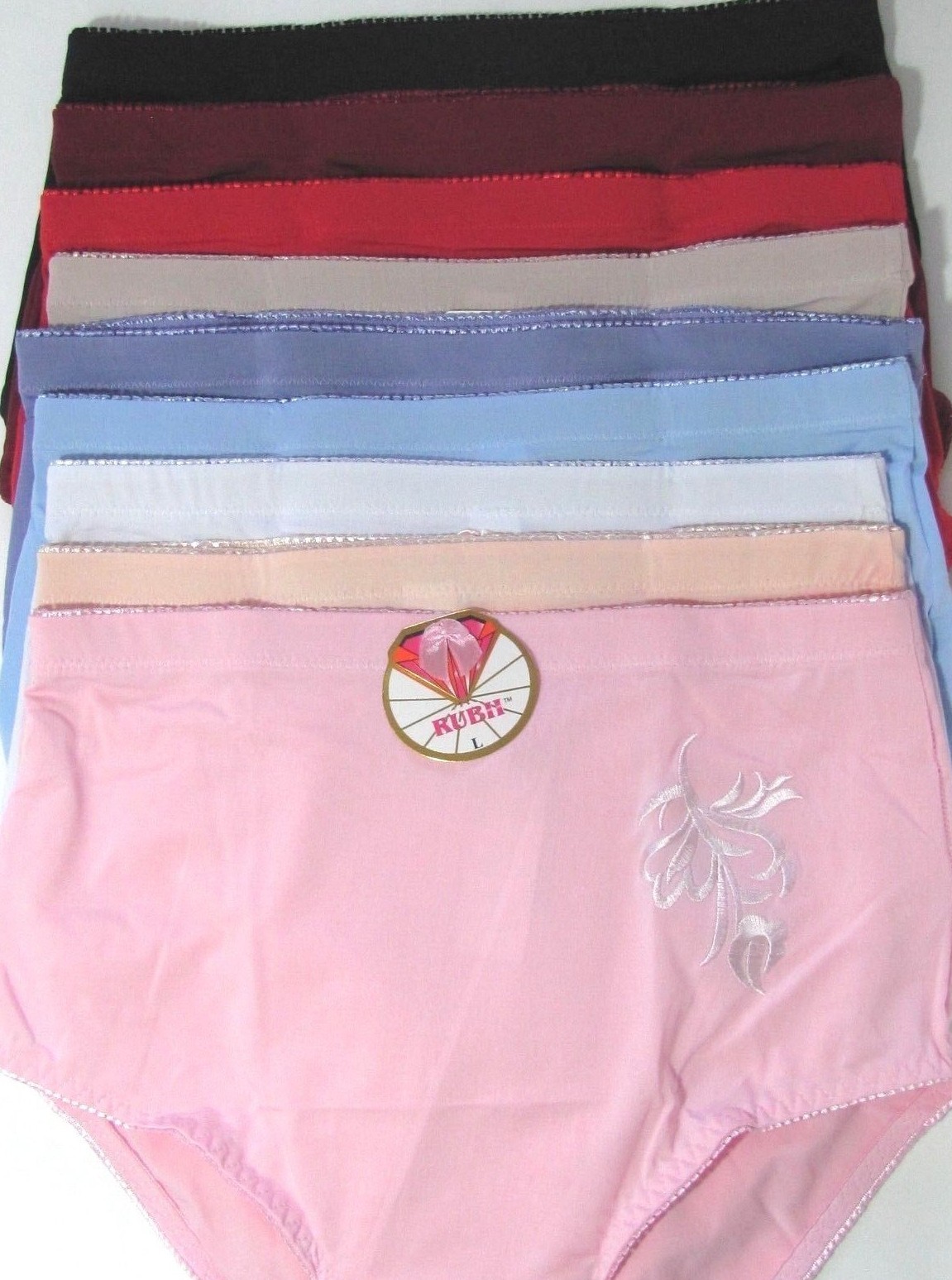 B3 Lovely Pink White Red Blue High Cut Waist Embroidered Sissy Bikini Panties L