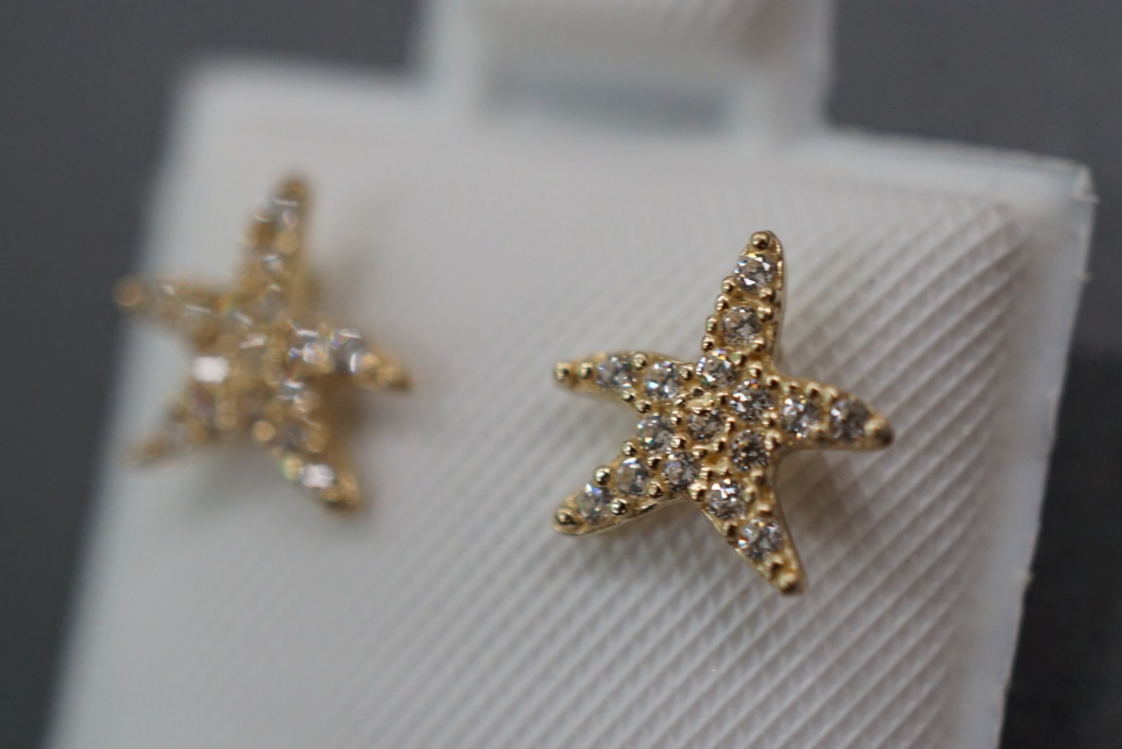как выглядит 14K Solid Yellow Gold 8MM Starfish CZ Women Children Screw Back Earrings. фото