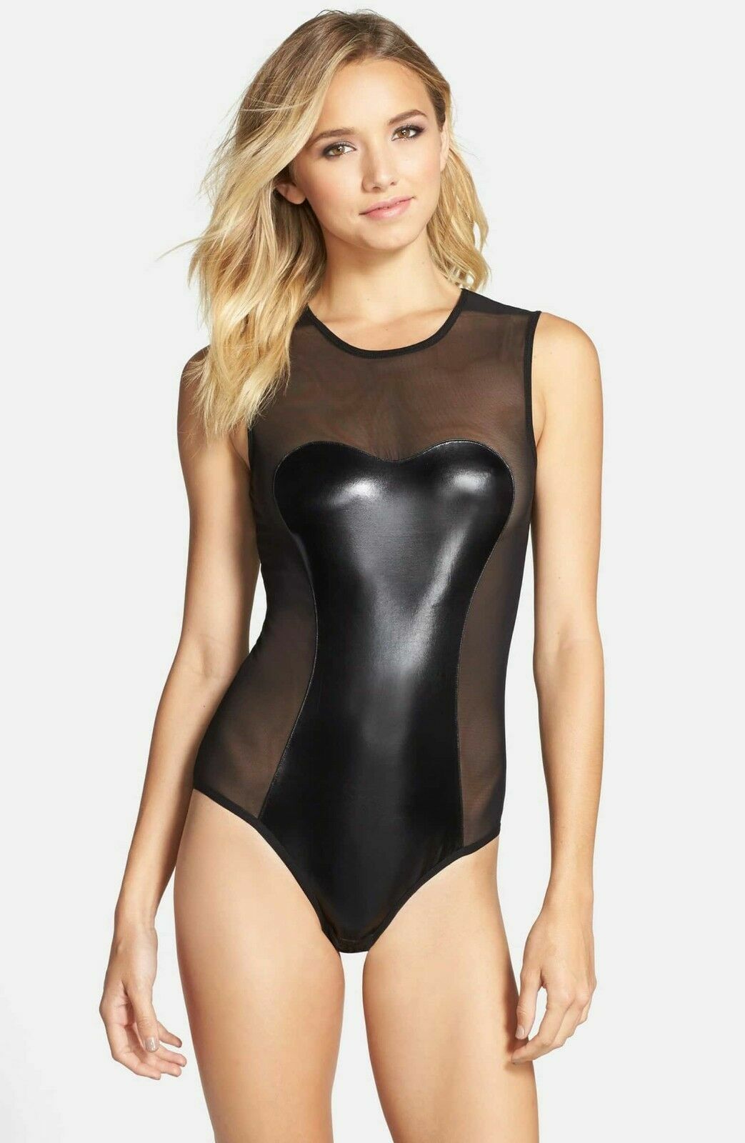 как выглядит NWT Hanky Panky Love Me Back Slick Mesh Bodysuit in Black SZ Medium C776 фото