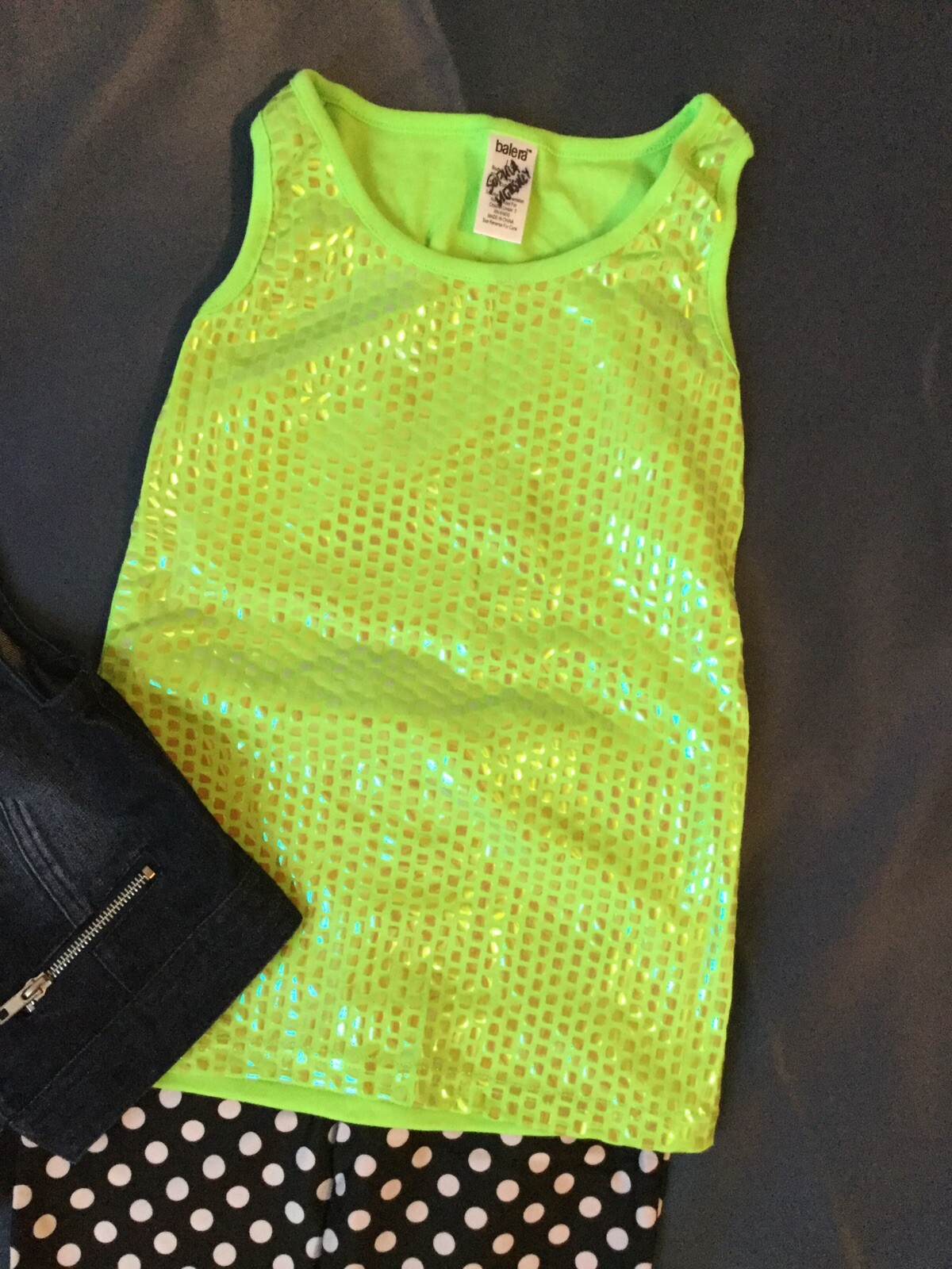 как выглядит Urban Groove Dance Pants, Denim Jacket, Neon Green Tank Child Large 3 Piece фото