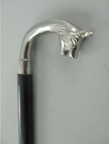 Silver Wolf Head Walking Stick Vinatge Classic Style Wooden Cane Walking Stick