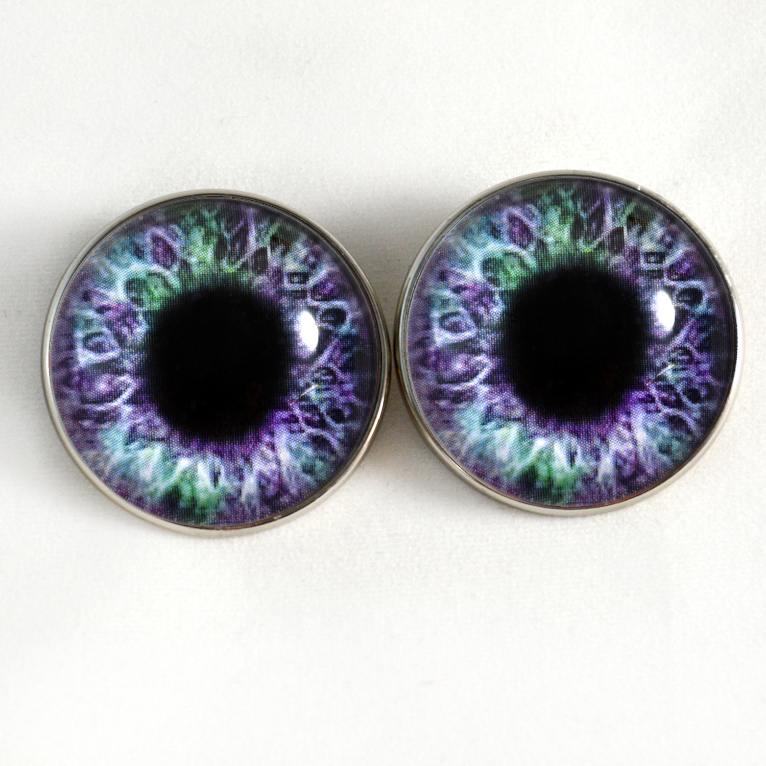 30mm Purple and Green Human Sew On Glass Doll Eyes Button Looped Stuffed Animal