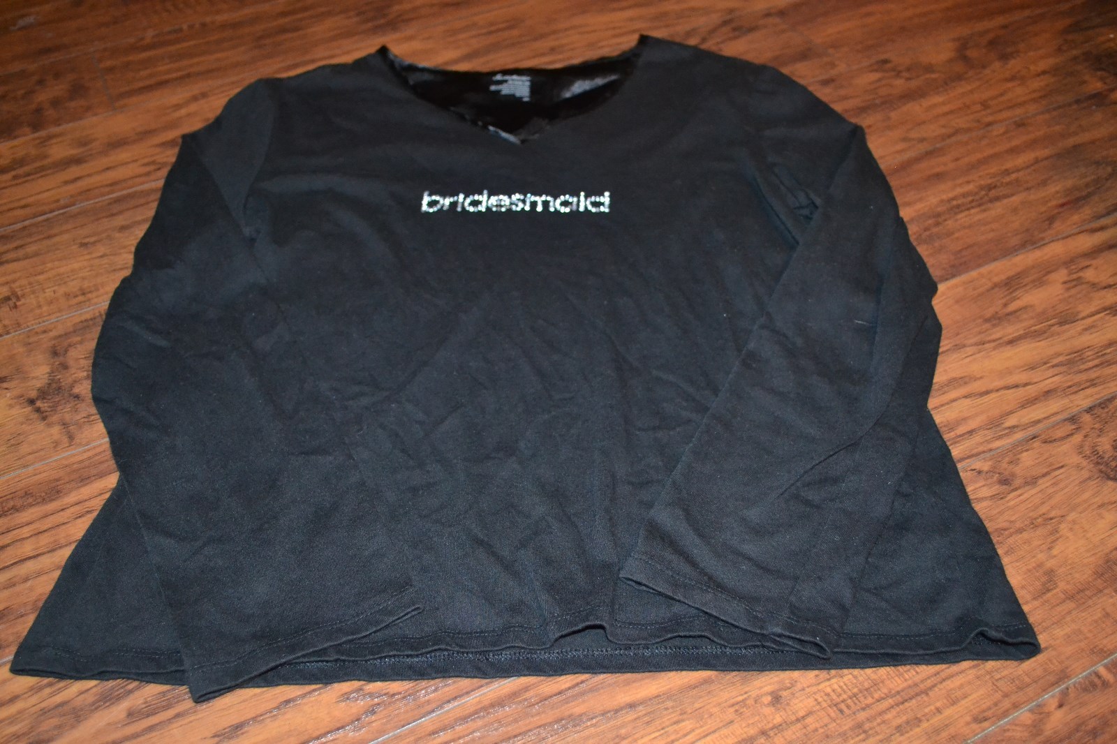 как выглядит B3- Secret Treasures Black "Bridesmaid" Long Sleeve Shirt Size M 8/10 фото