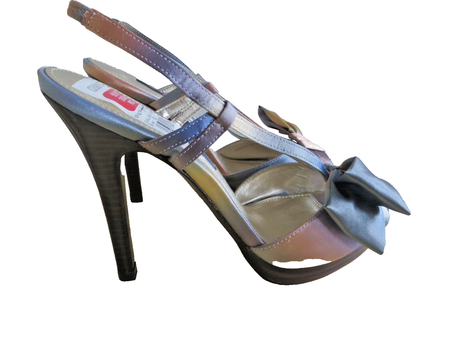 NINA 'Evalora' Watercolor Satin Bow Peep Toe Slingback Heels 7 NEW 89.