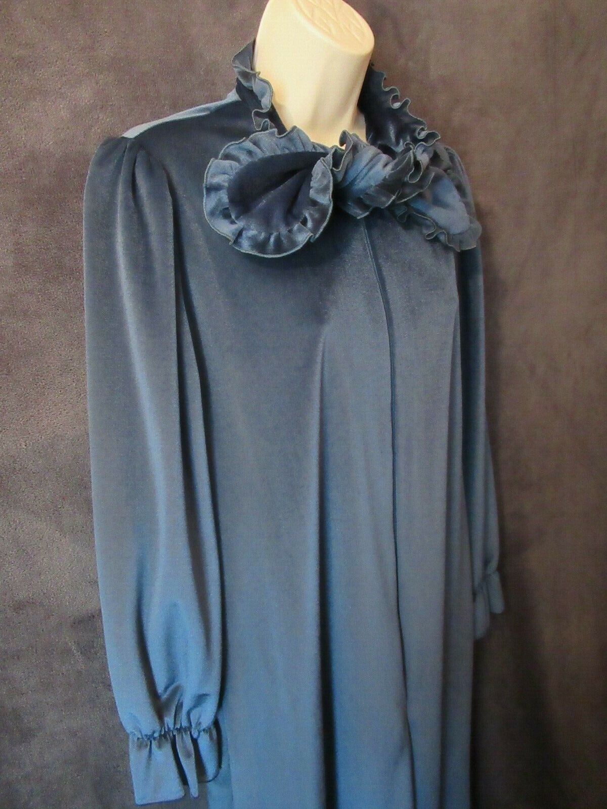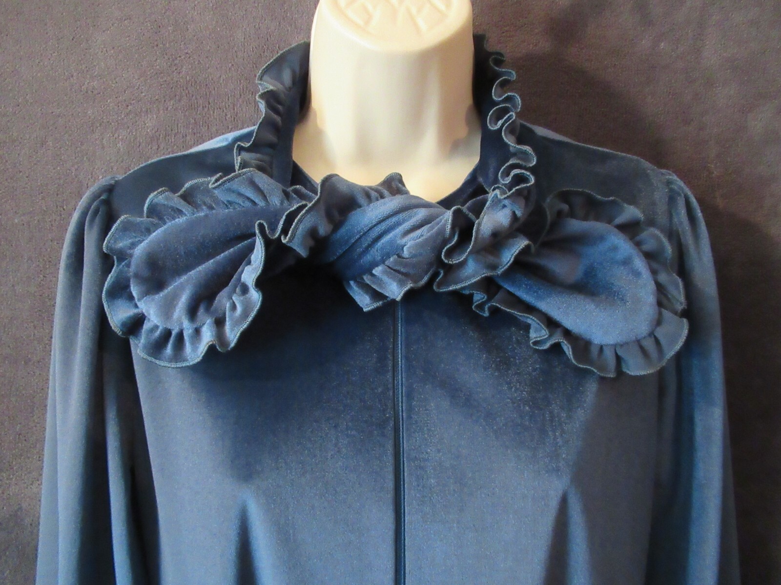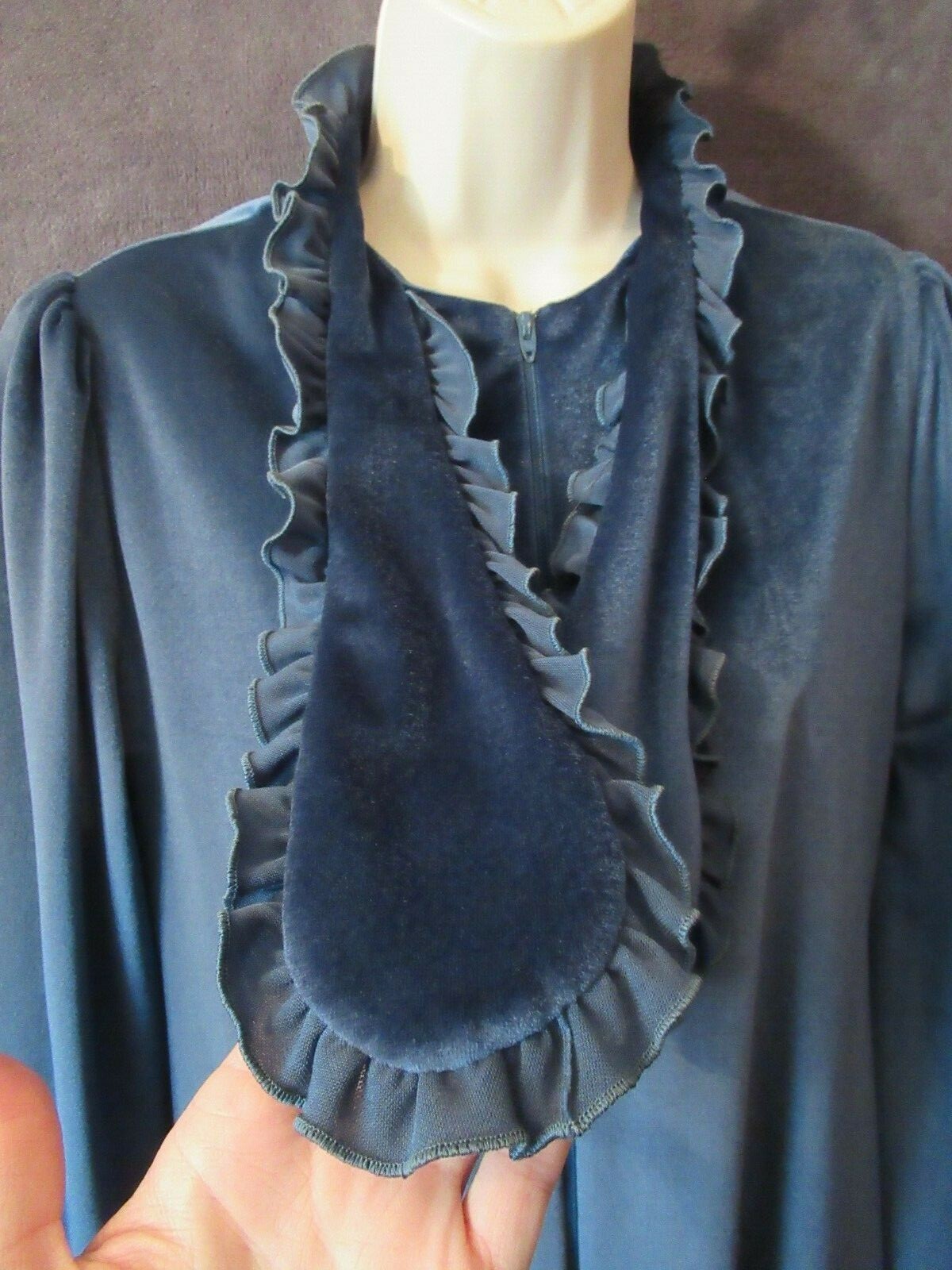 как выглядит Vintage Keyloun Unique Marine Blue Velvet Ruffled Tie Long Zip Front Robe M фото