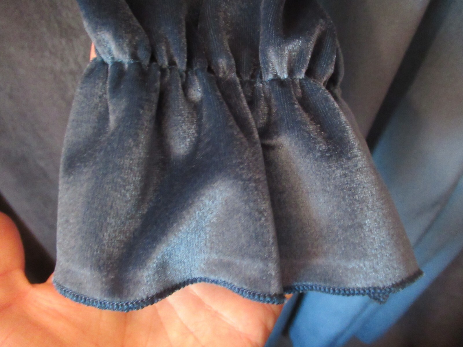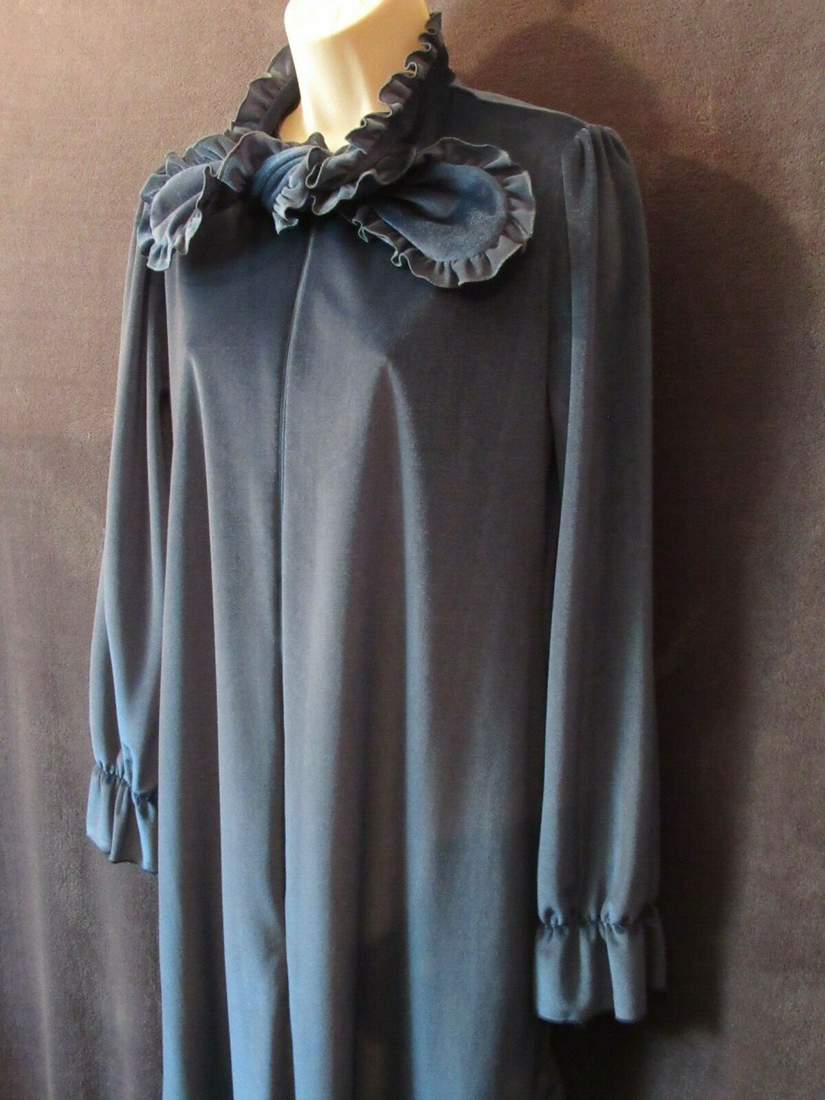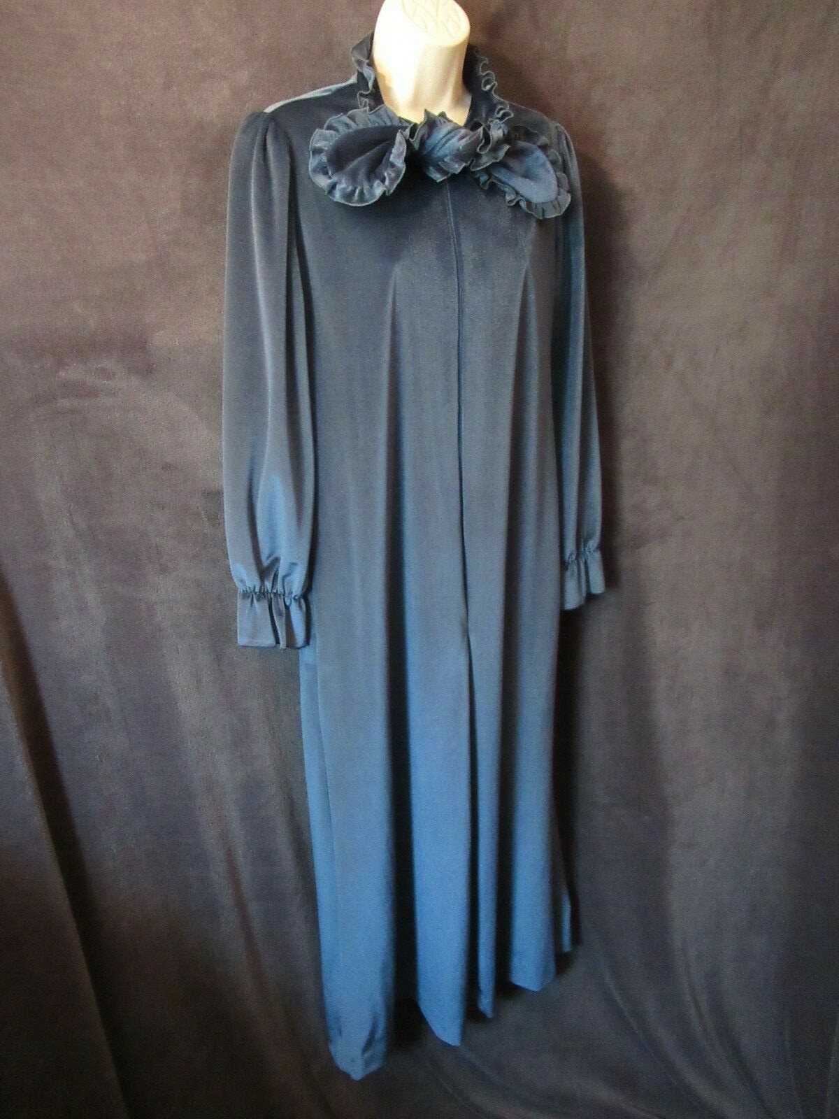 как выглядит Vintage Keyloun Unique Marine Blue Velvet Ruffled Tie Long Zip Front Robe M фото
