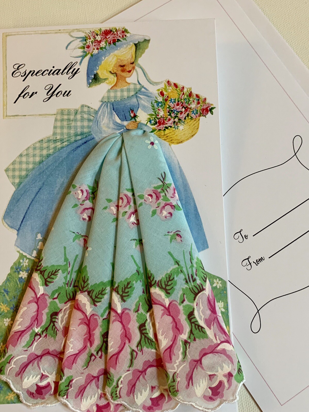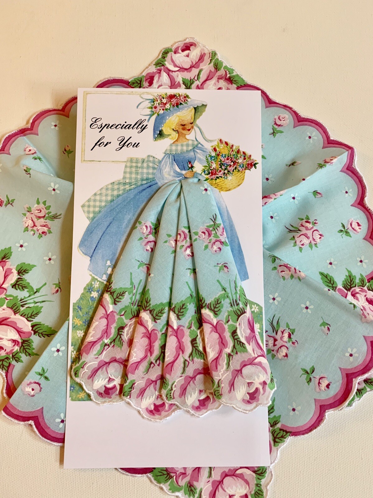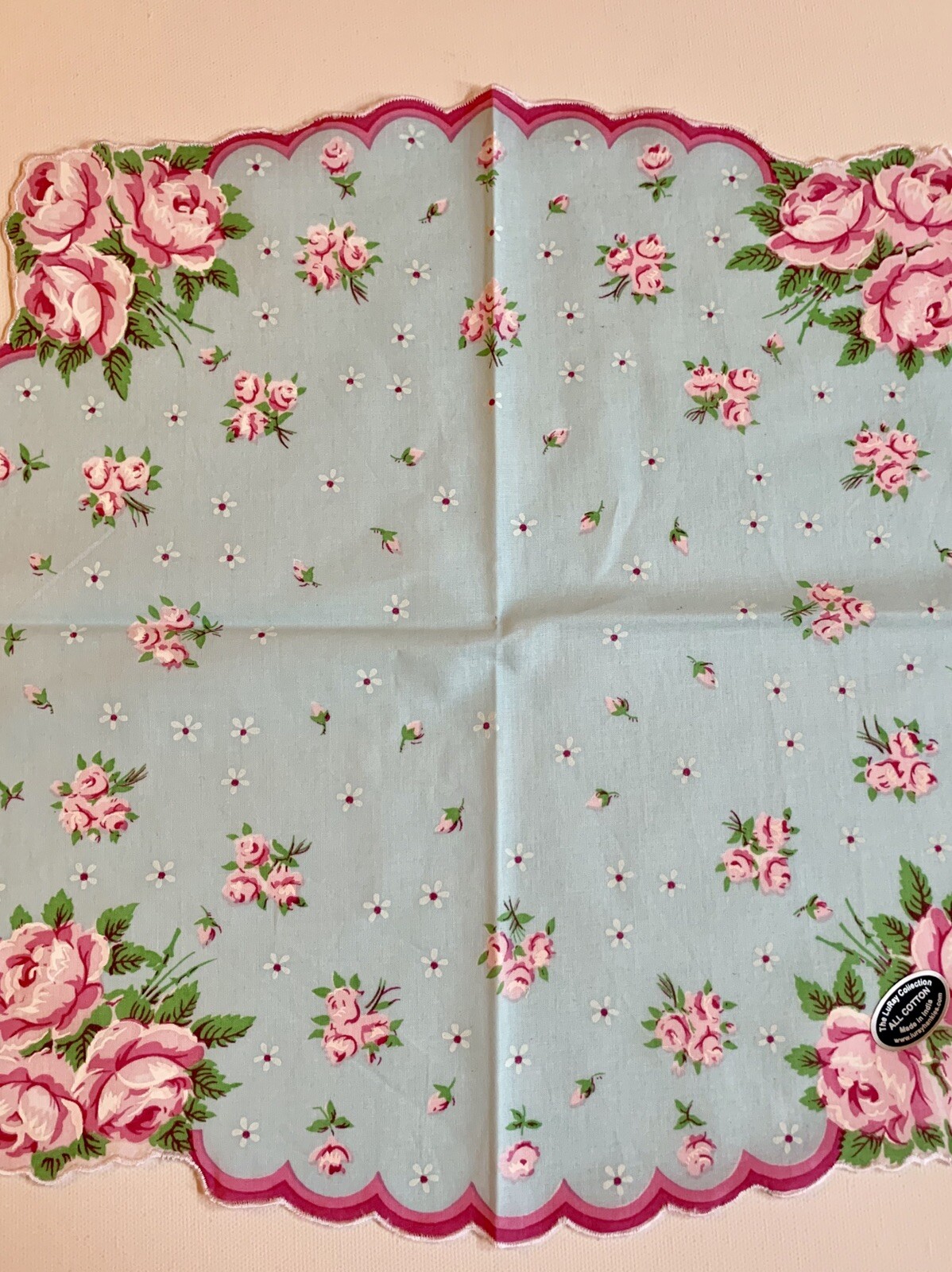 Beautiful New Floral Mint W Pink Roses Handkerchief Gift Card - All Occasion