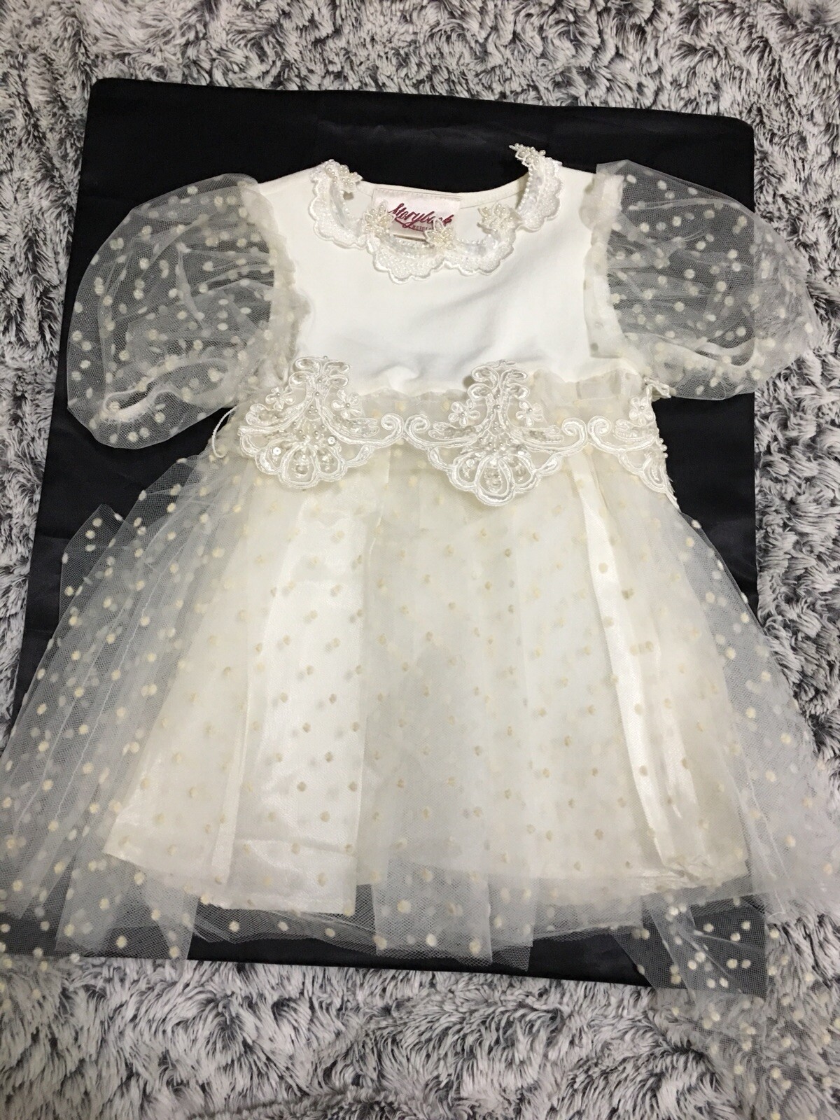как выглядит Vintage Storybook Heirlooms Polka Dot White Formal Dress w/ Pants HeadBow 12MO фото