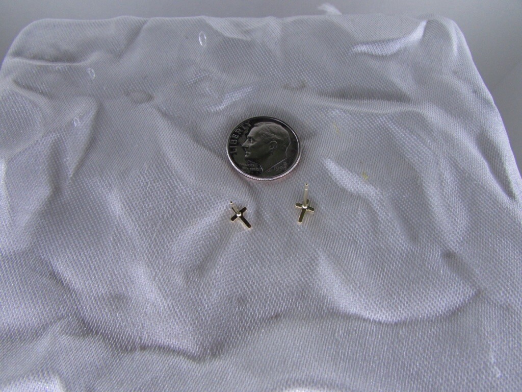 New 14K Yellow Gold Cross Stud Earrings, Baby/Childs