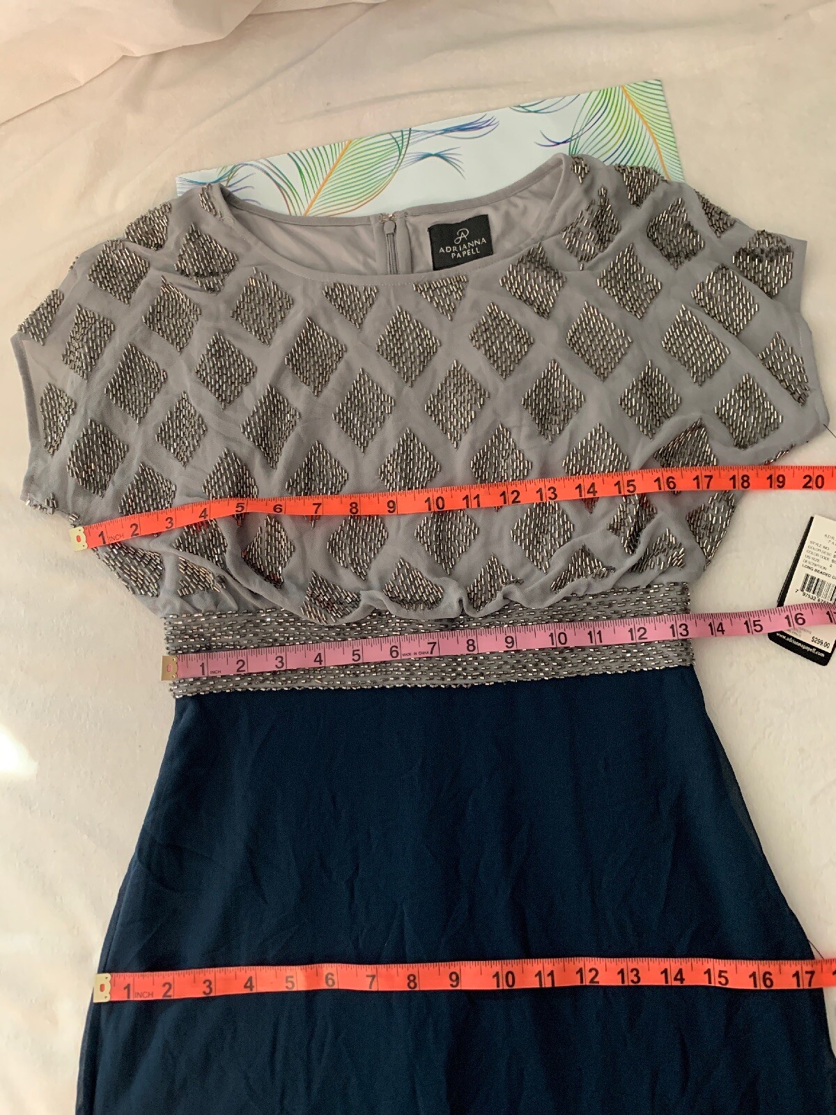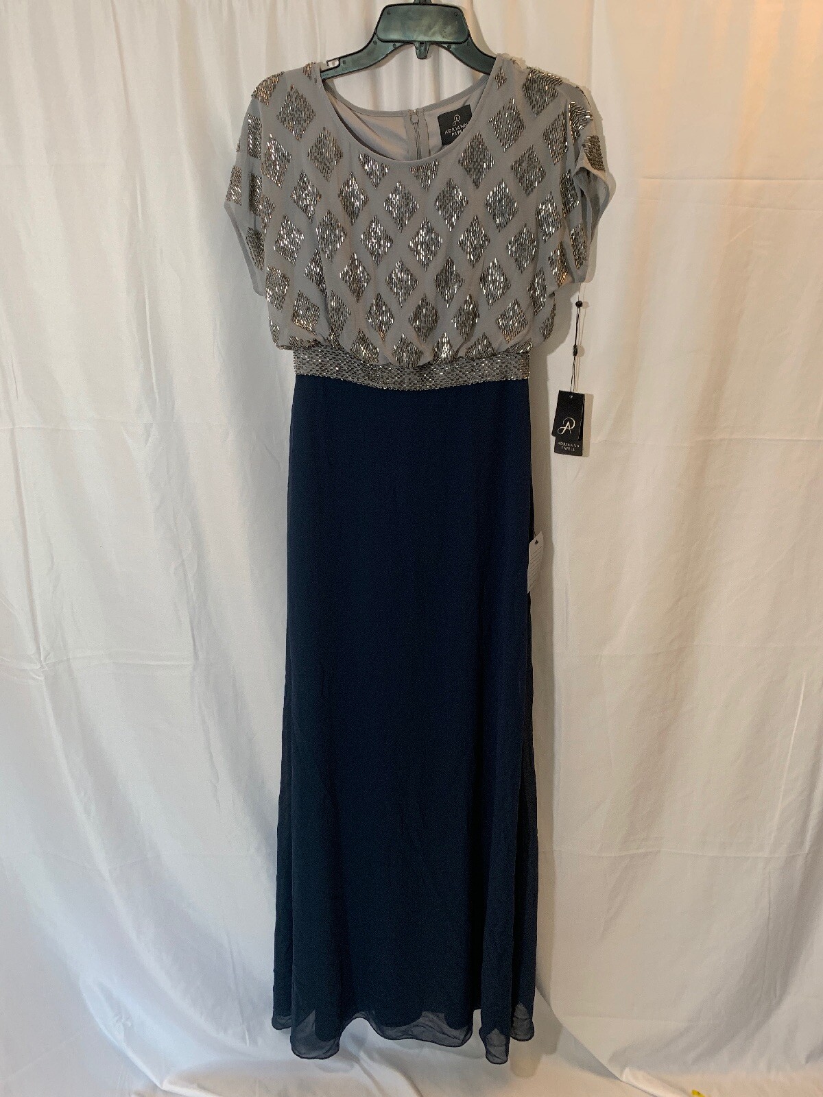 как выглядит NWT Adrianna Papell Beaded Colorblock Blouson Gown in Silver/Navy SZ 2 F637 фото