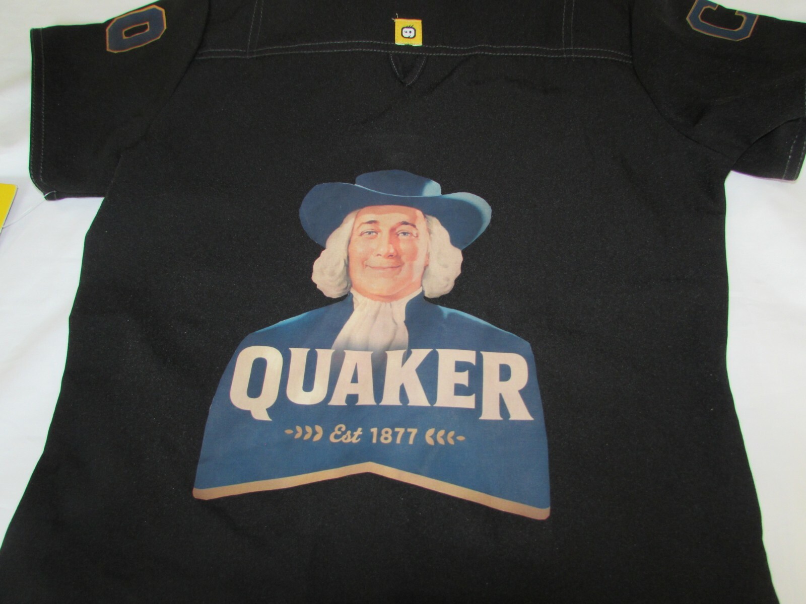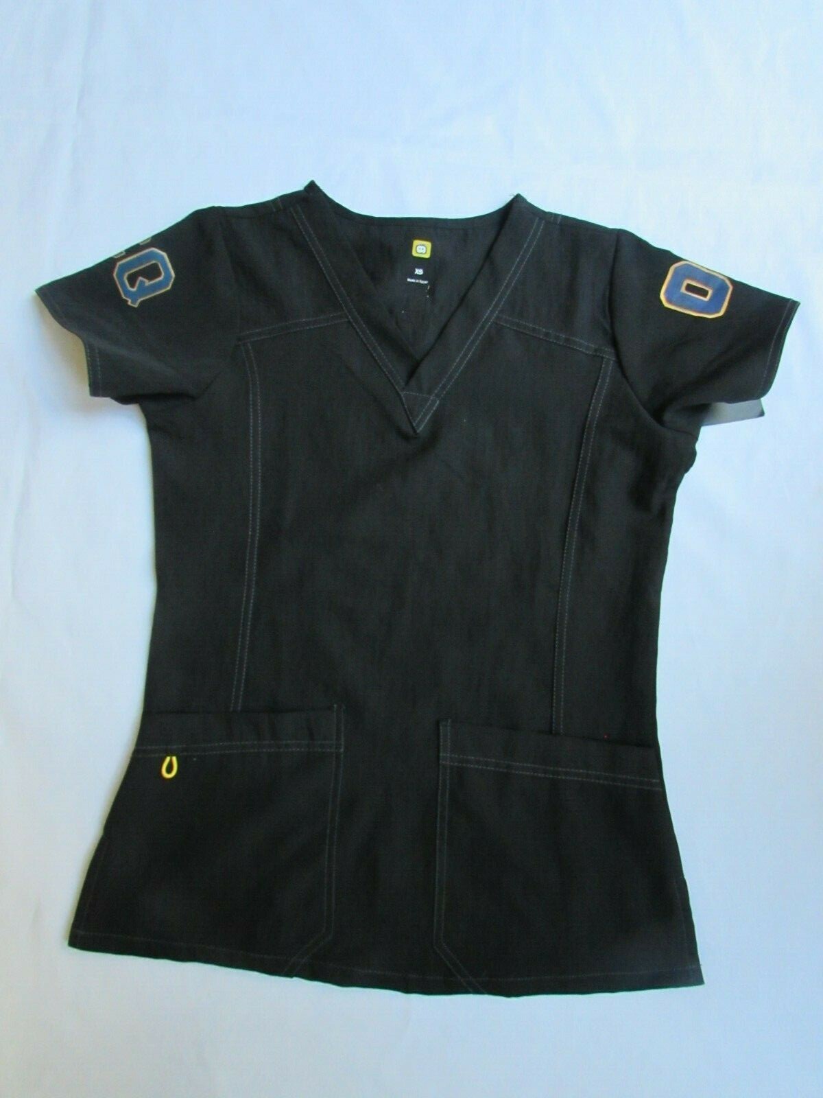 Wonderwink SCRUB TOP Uniform Promotional Quaker Print Black Polyester Top SZ XS