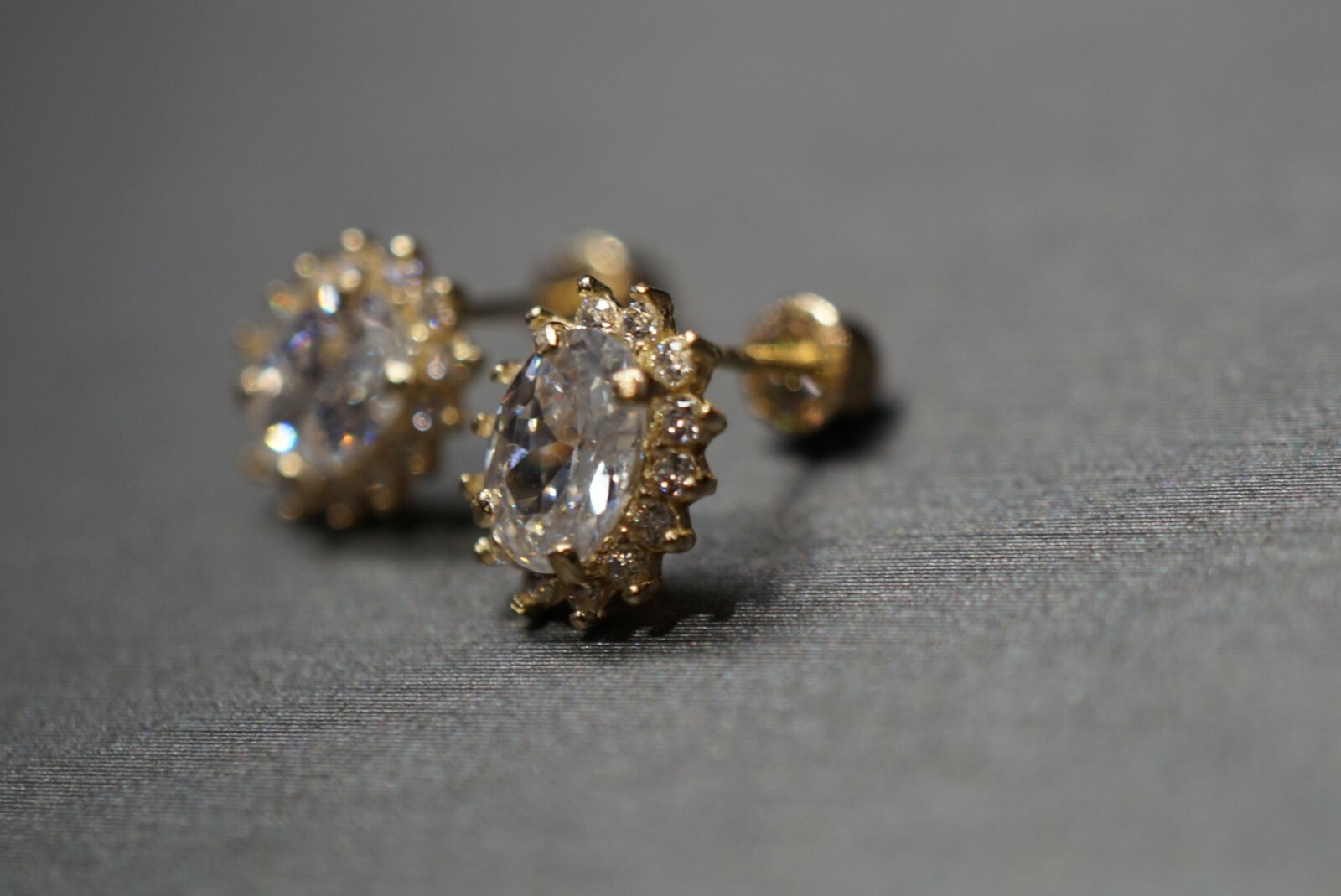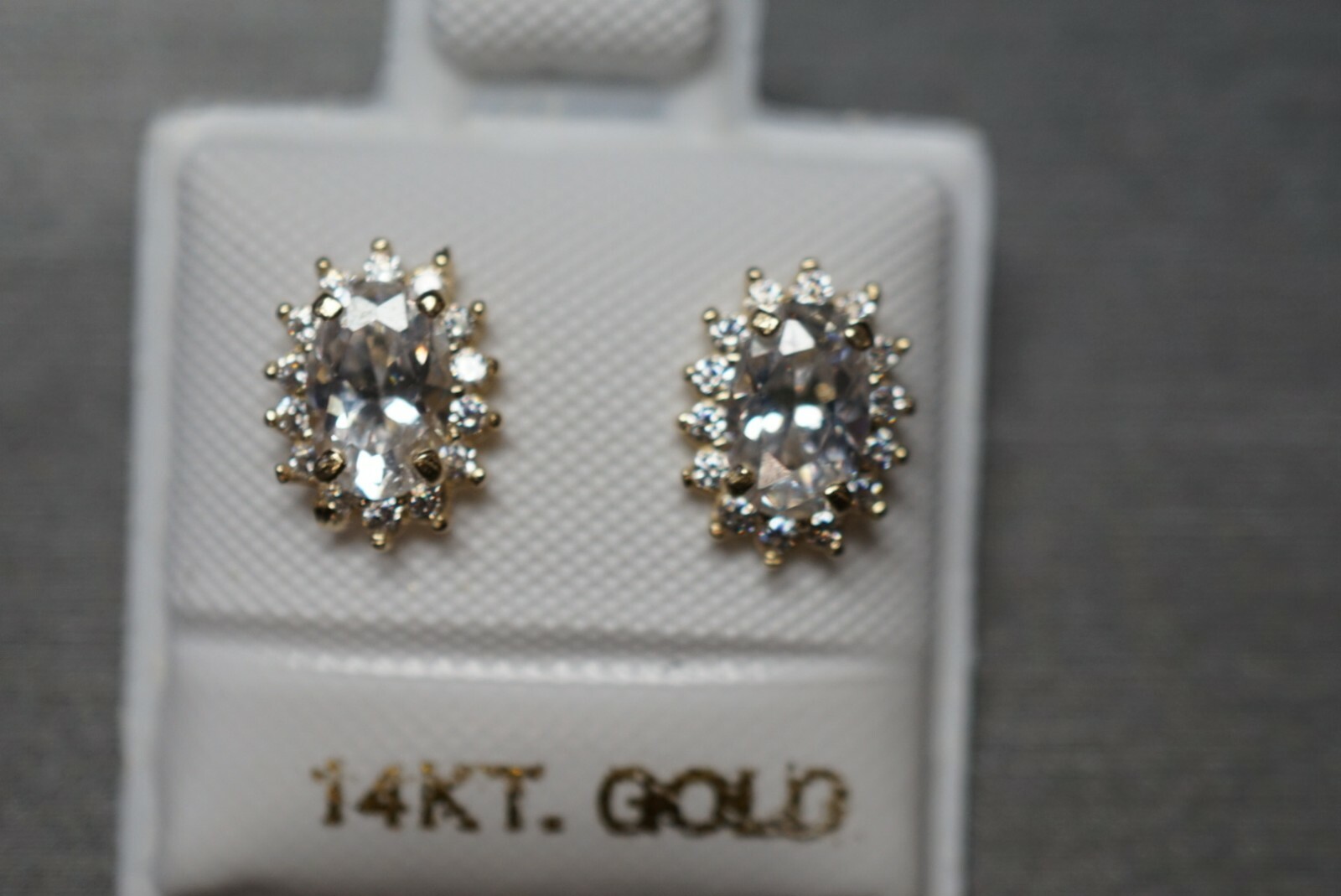 14K Solid Yellow Gold Oval Shape CZ Screw Back Earrings. Children Women