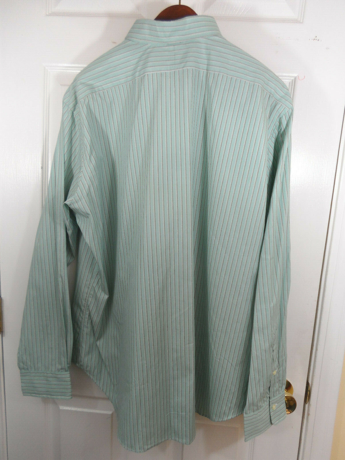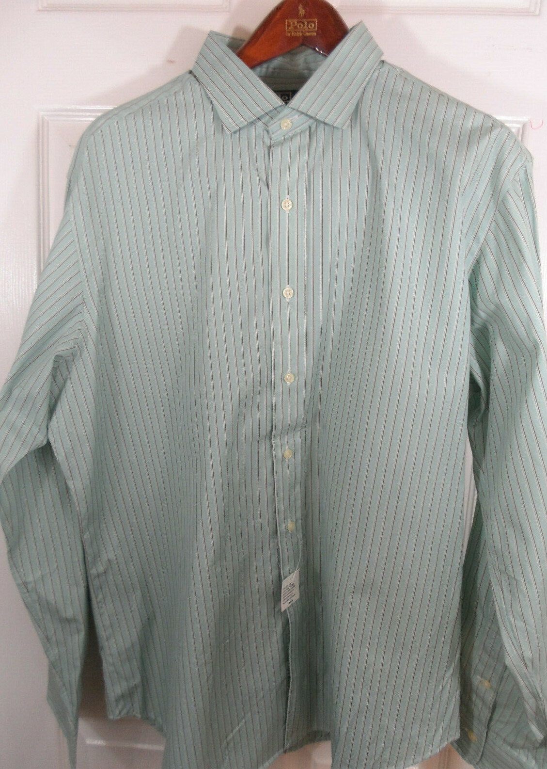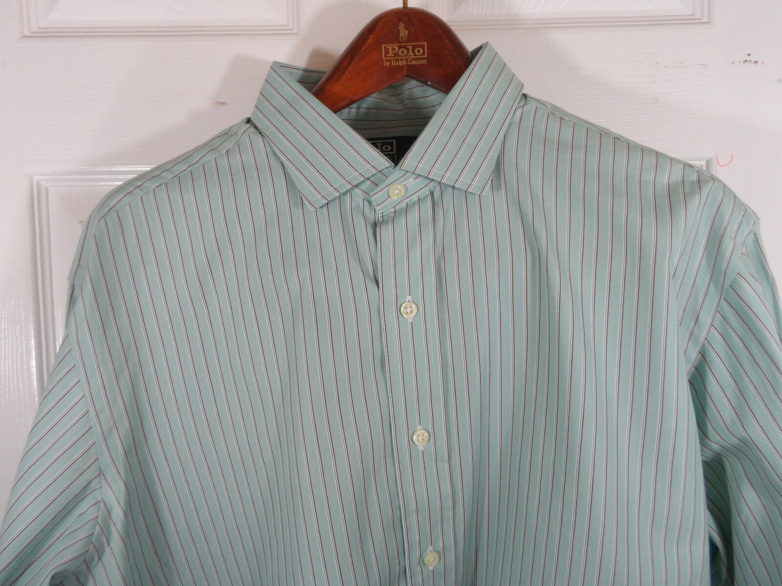как выглядит New Polo Ralph Lauren Green Stripe Dress Shirt Sz XL Spread Collar фото