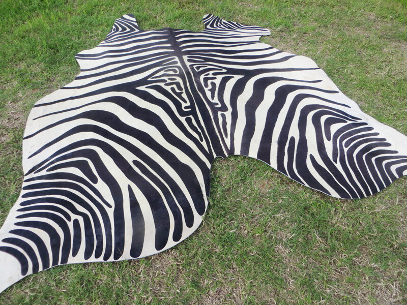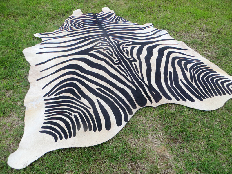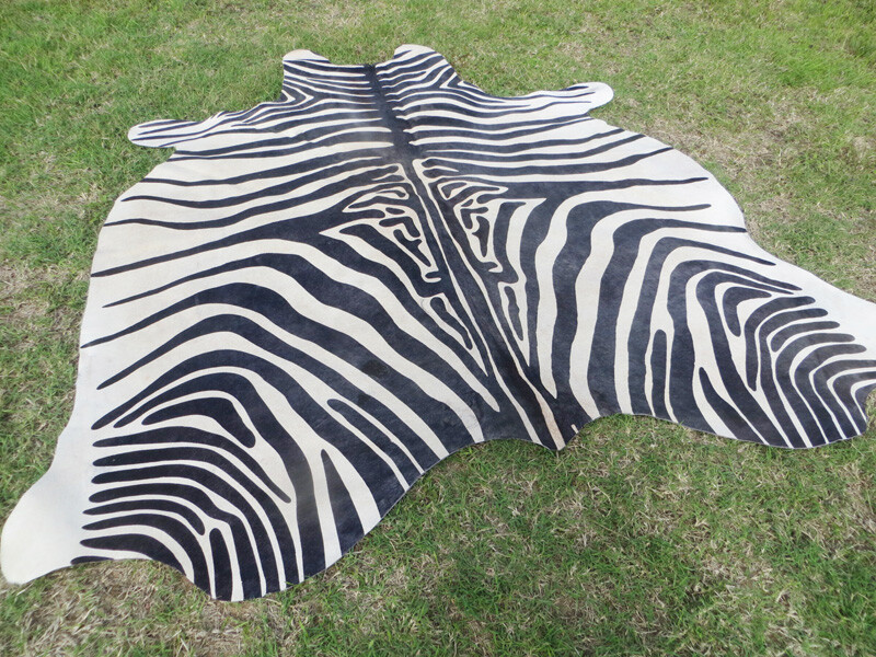 HUGE ZEBRA BLACK WHITE print printed Cowhide Rug natural Hair Cow Hide Skin