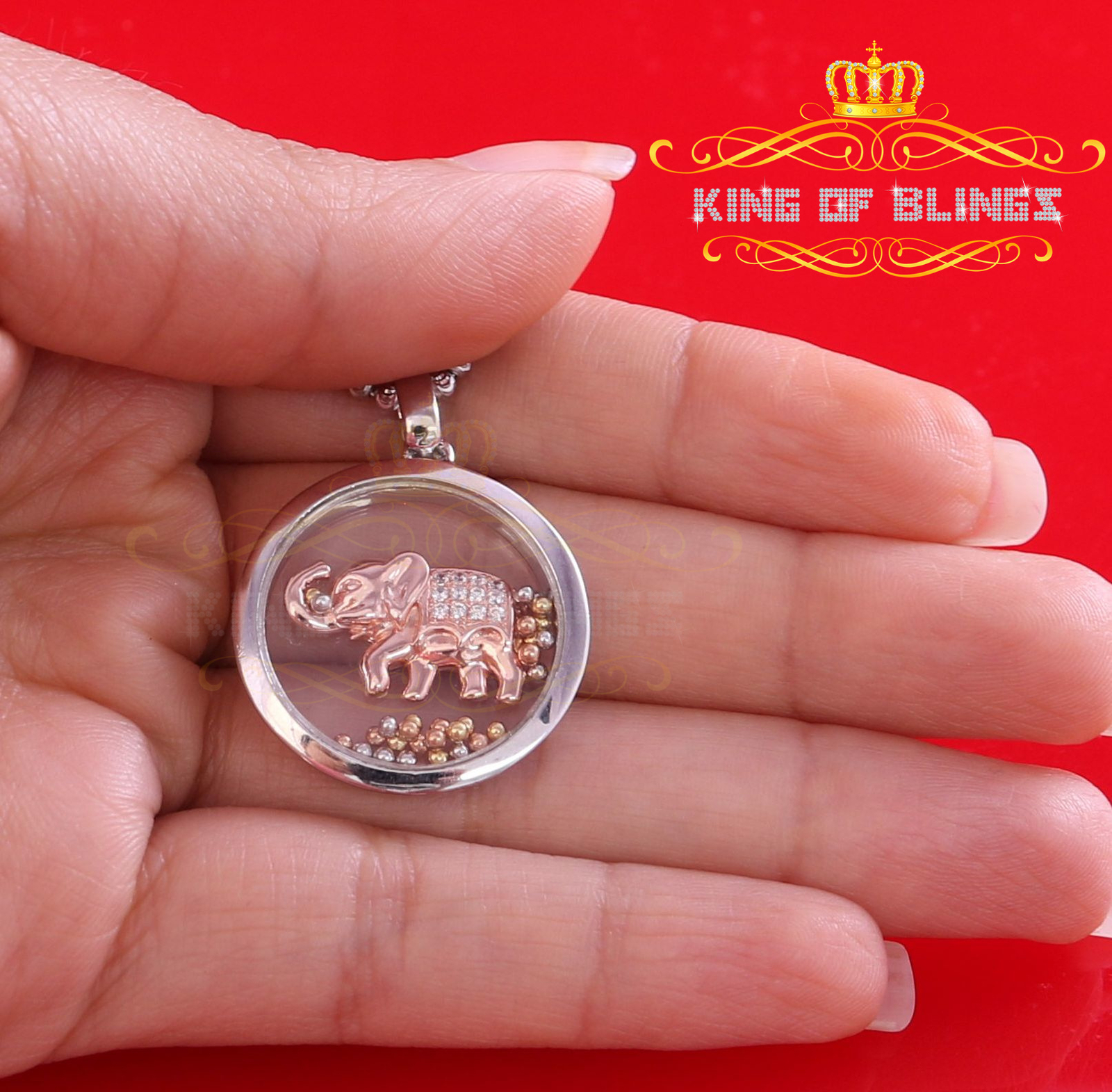 Beautiful White Sterling Silver with Charming Elephant Pendant Cubic Zirconia