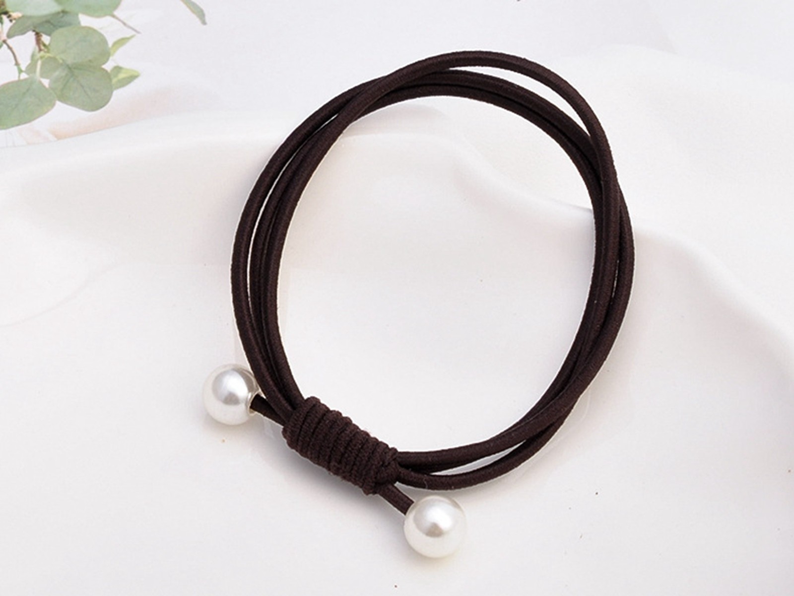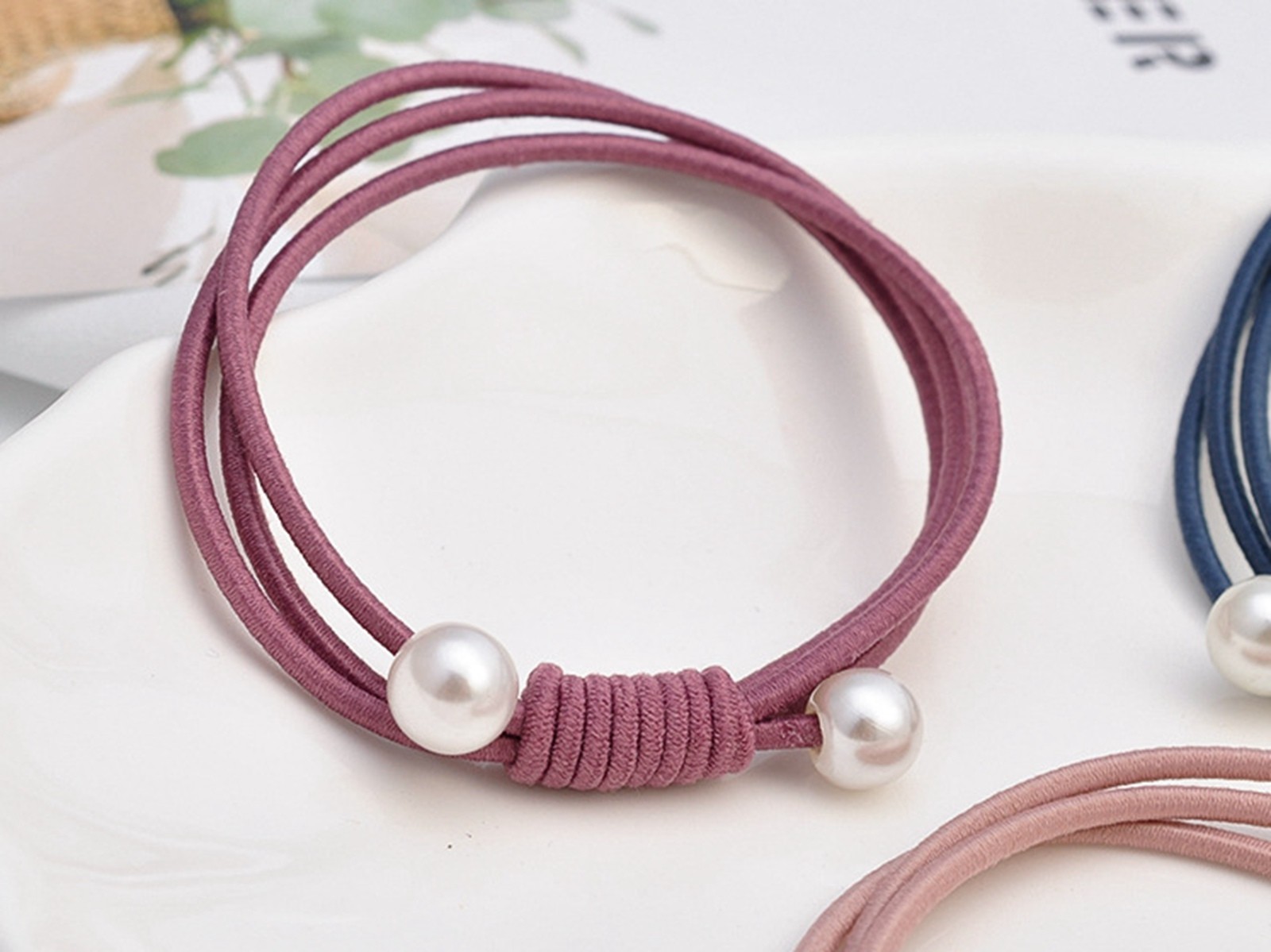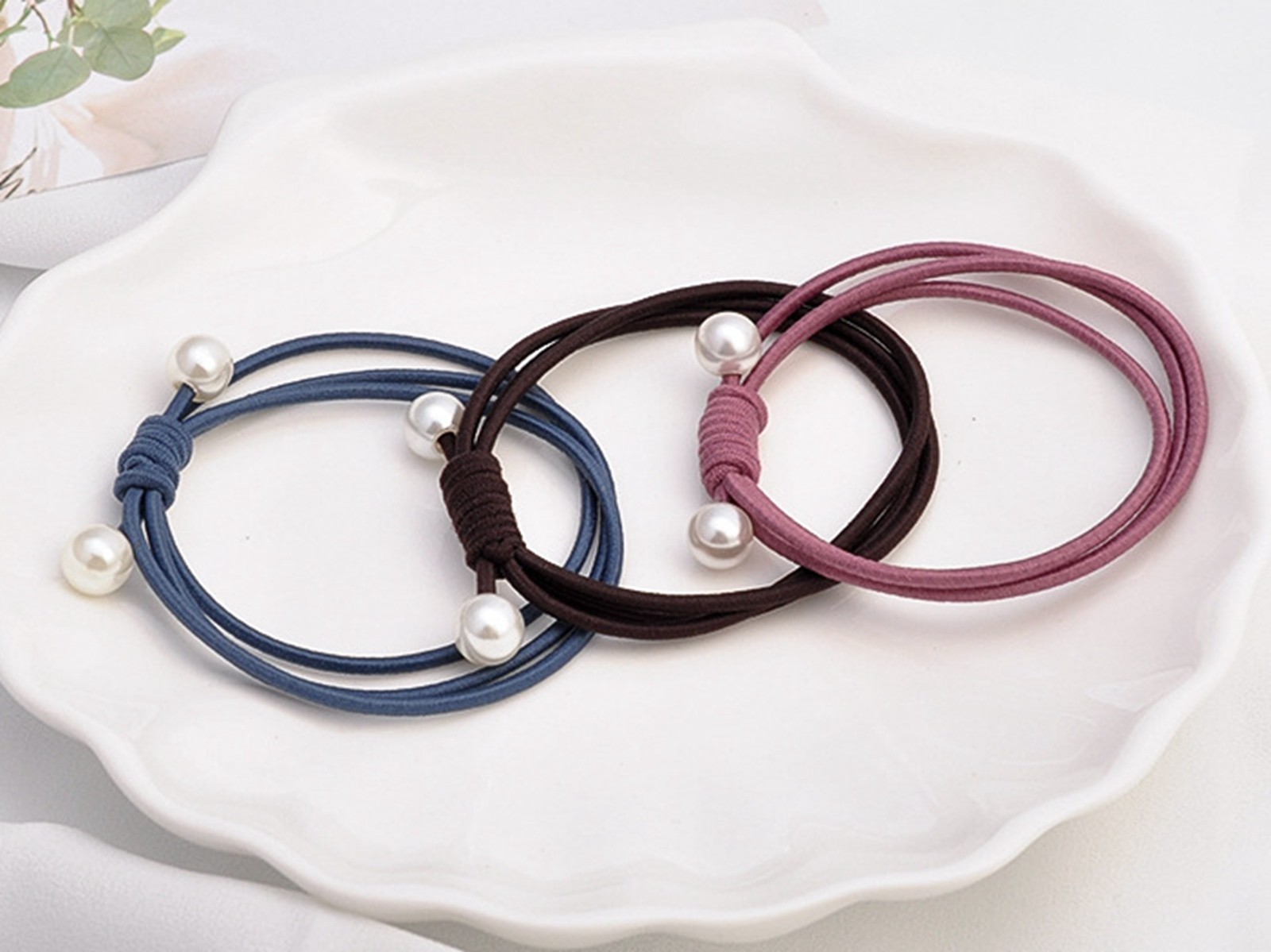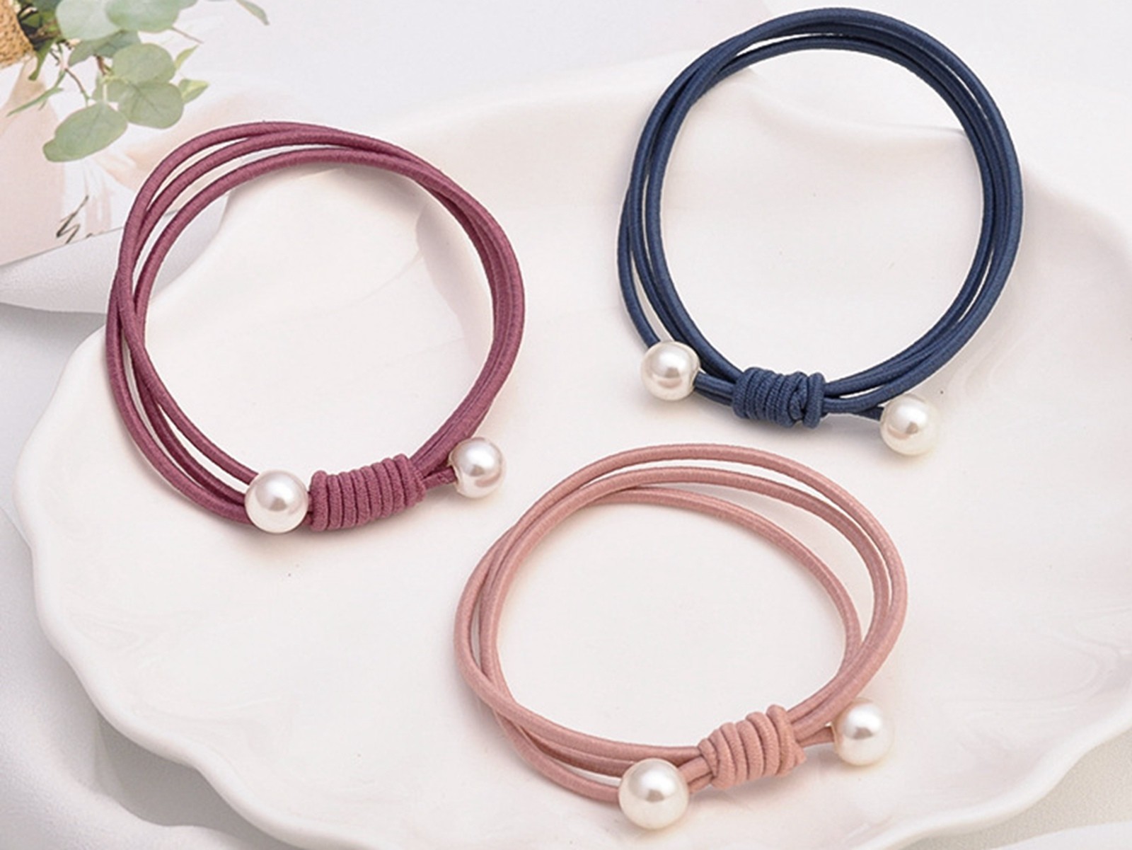 как выглядит 10pcs Mixed Color Triple Knotted with Pearl Hair Ties Rope Elastic Rubber Bands фото