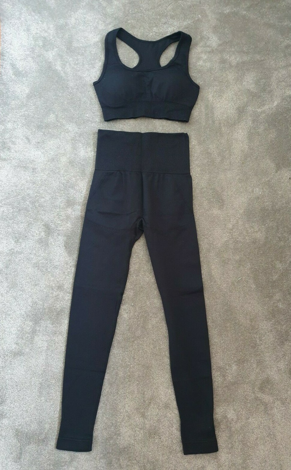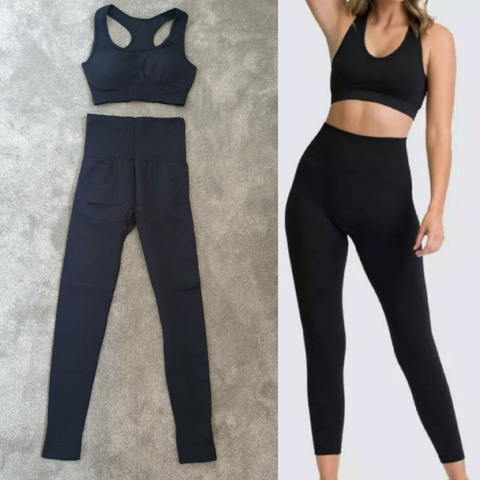 UK Women 2 PCs Seamless Gym Yoga Fitness Set Leggings Crop Racer Top Bra Workout