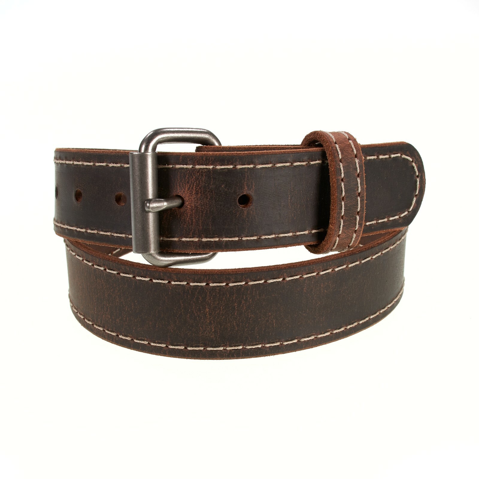 как выглядит Buffalo Leather Belt 1 1/4" width, Made in USA, Vintage Brown accent stitched фото