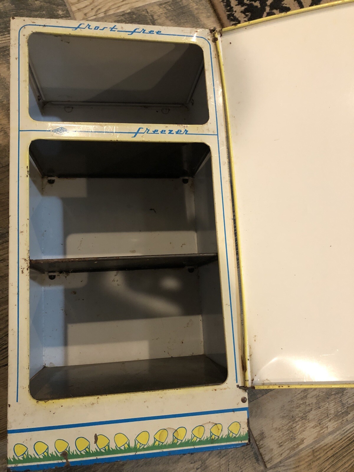 • 2 Piece SNOW WHITE TIN KITCHEN SET WOLVERINE TOY Sink, Fridge USA