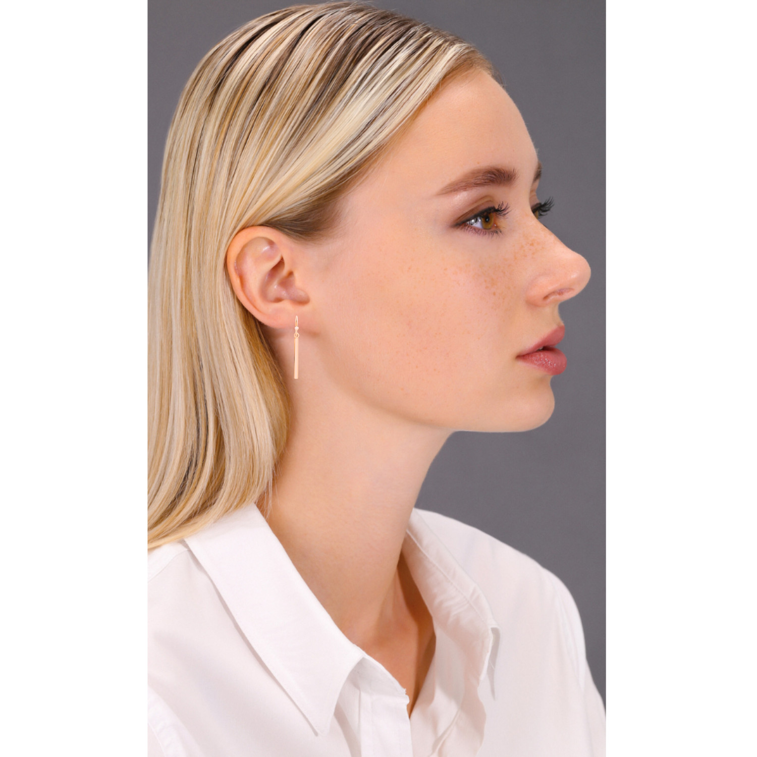 Gold Dainty Linear Bar Dangle Drop Hook Wire Earrings Solid 925 Sterling Silver