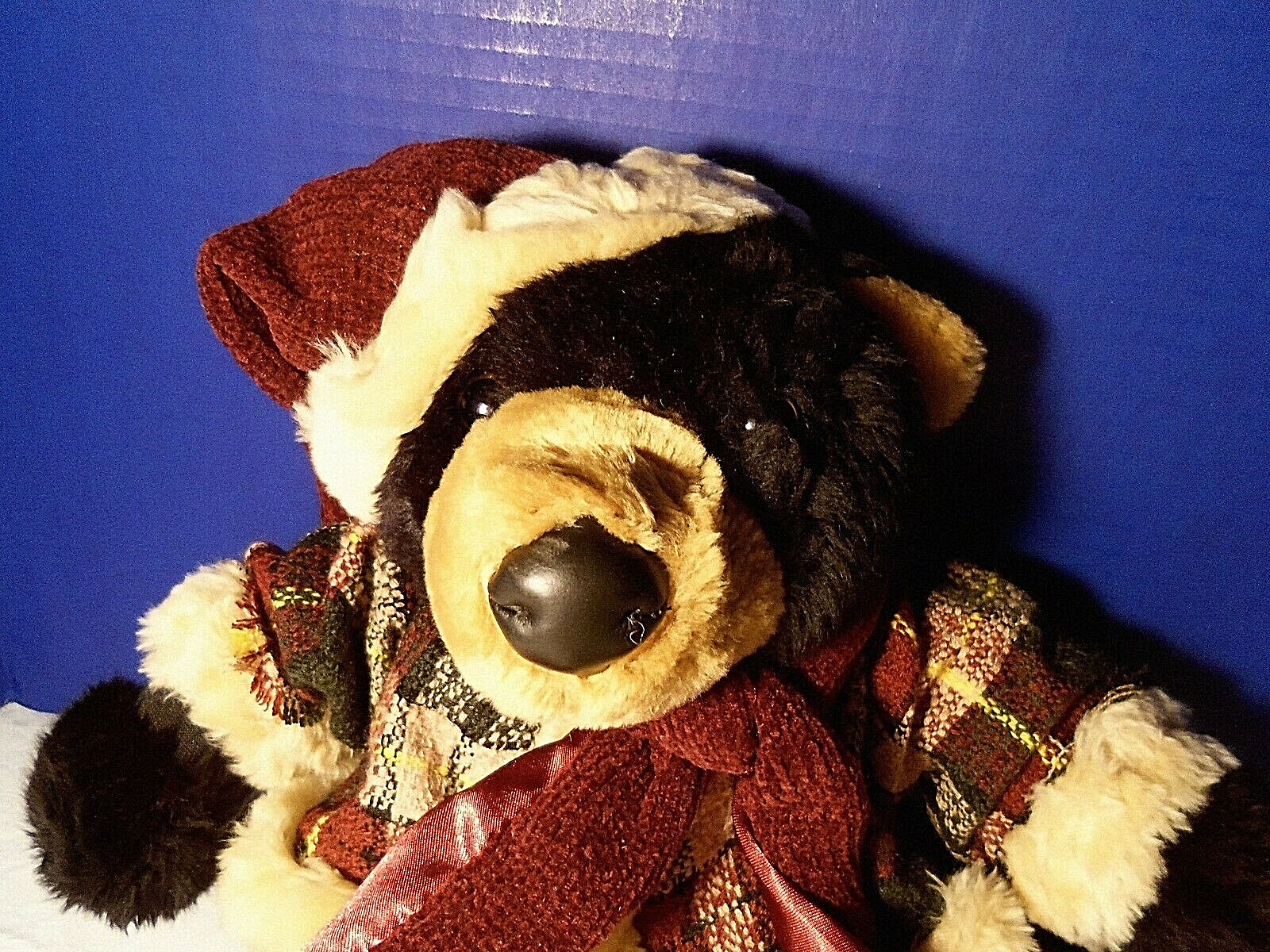 как выглядит Christmas teddy Bear Plush Black with Cute hat coat Scarf by Dan Dee 15 inch фото