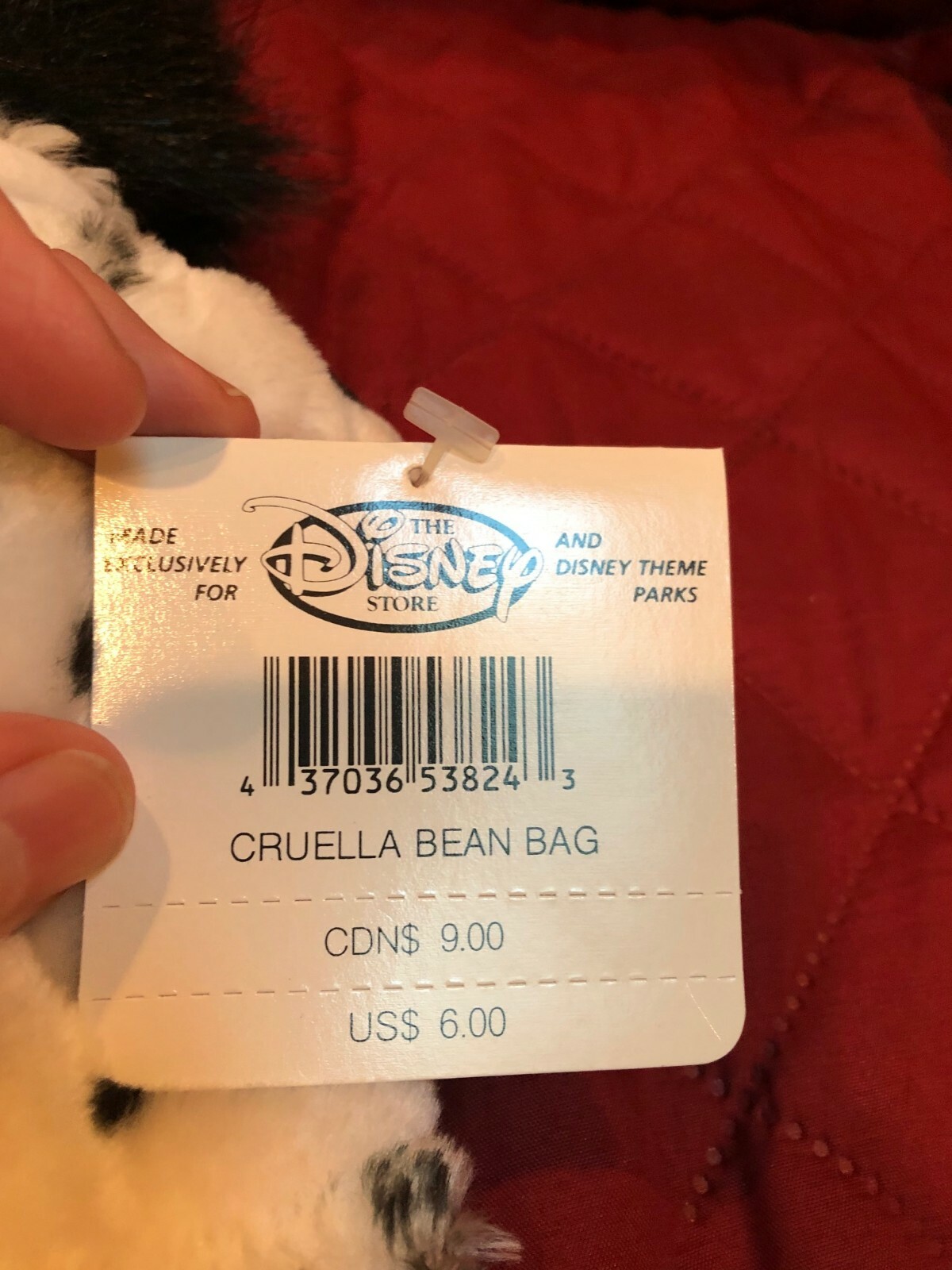 RETIRED DISNEY STORE EXCLUSIVE 101 DALMATIANS CRUELLA 9 BEAN BAG PLUSH TOY
