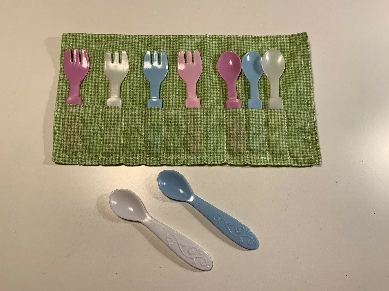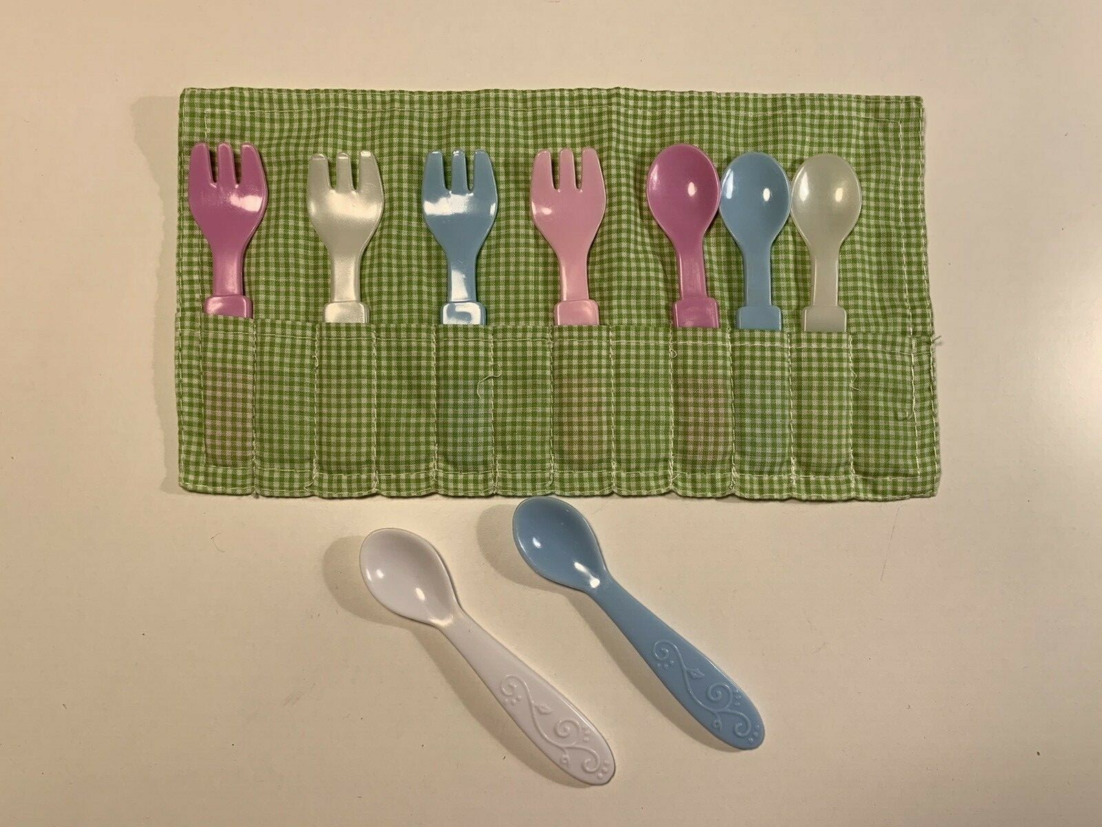 Plastic Pretend Play Lot of 10 Fork Spoons - 2 Spoons are Disney Blue White Pink