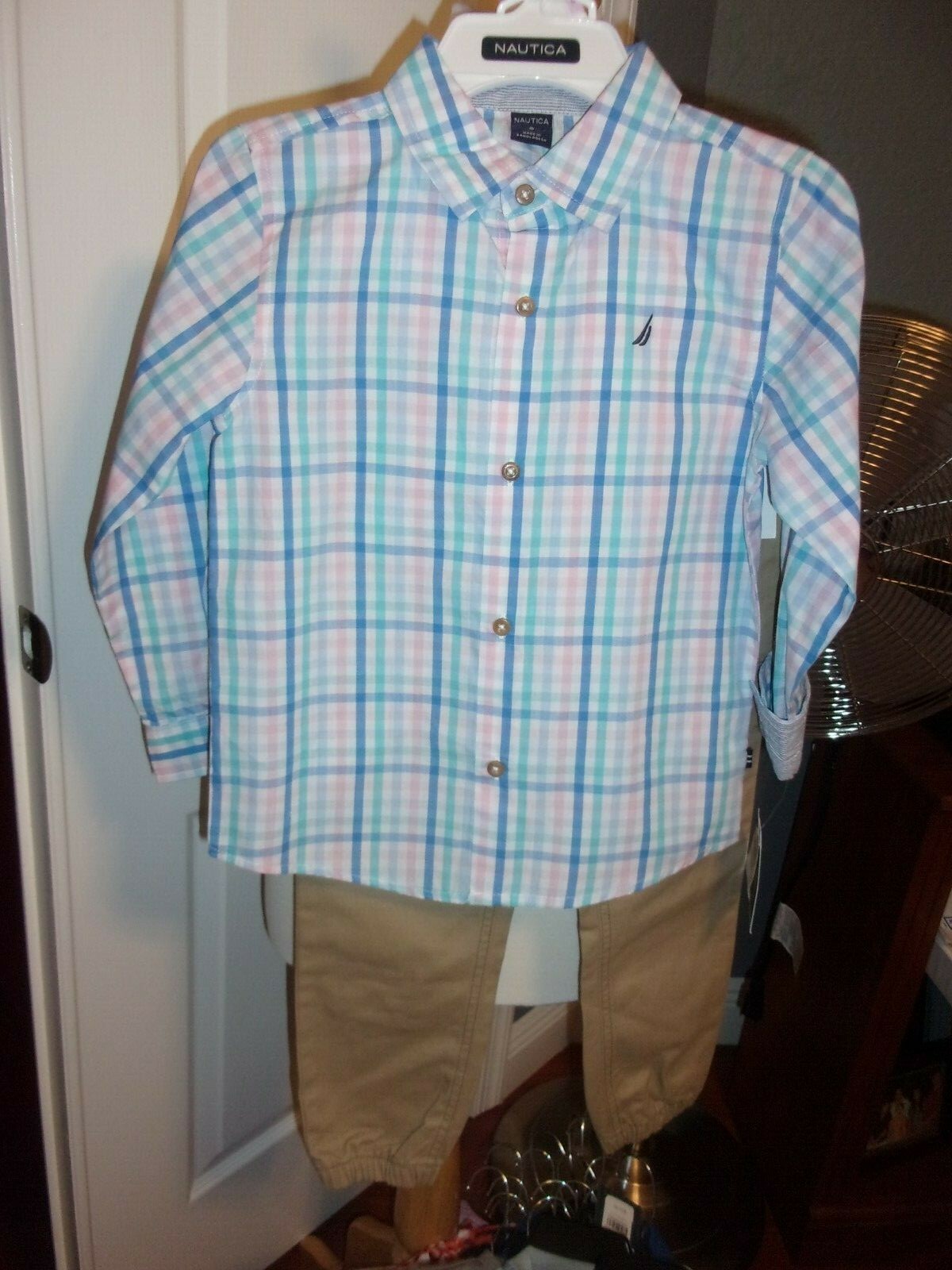 как выглядит NAUTICA BOYS 2PC PANTS SHIRT OUTFIT MSRP 59 фото