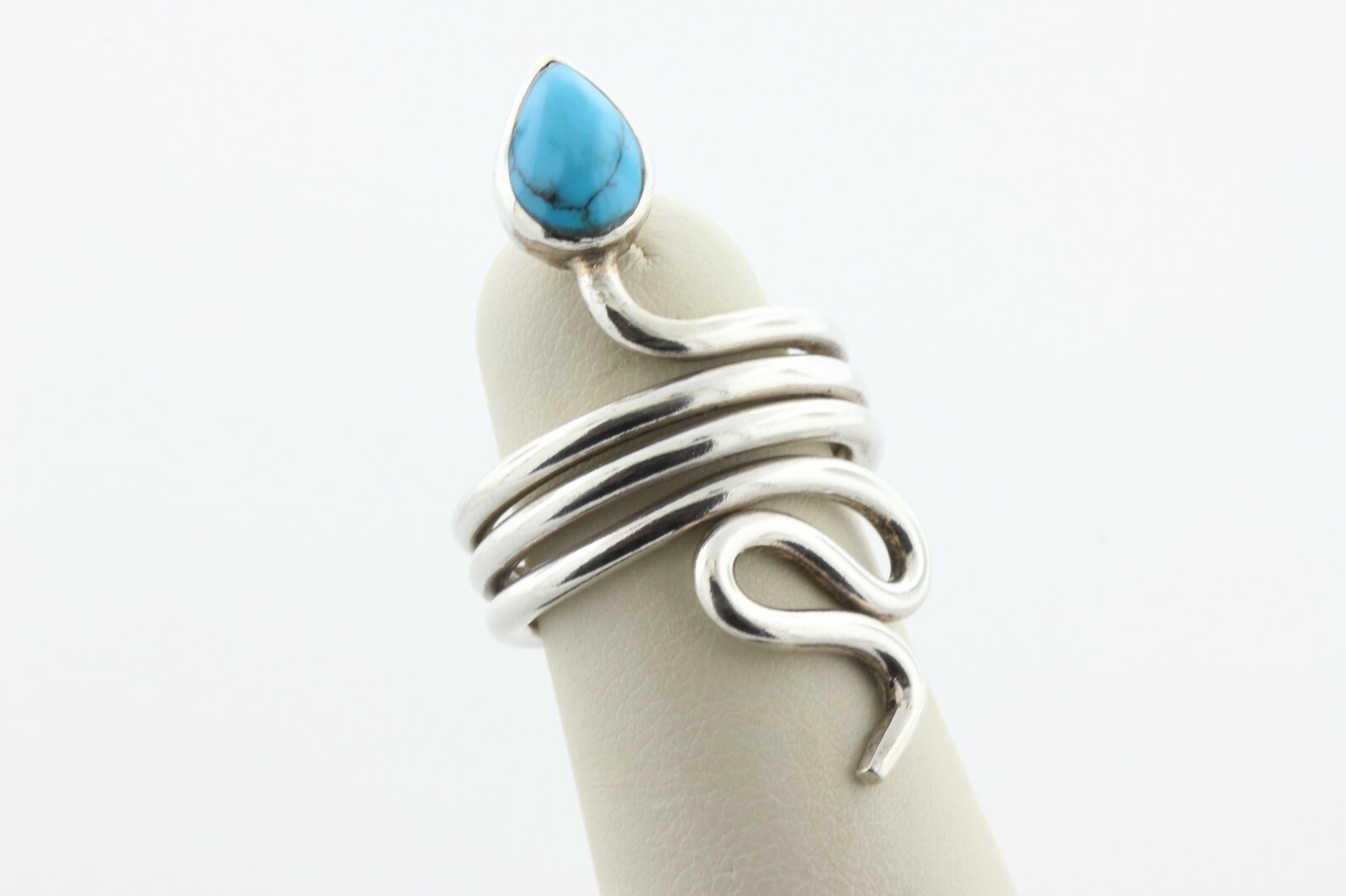 как выглядит Coiled Snake Turquoise Howlite Inlay Head Sterling Silver 925 Band Ring - Size 6 фото