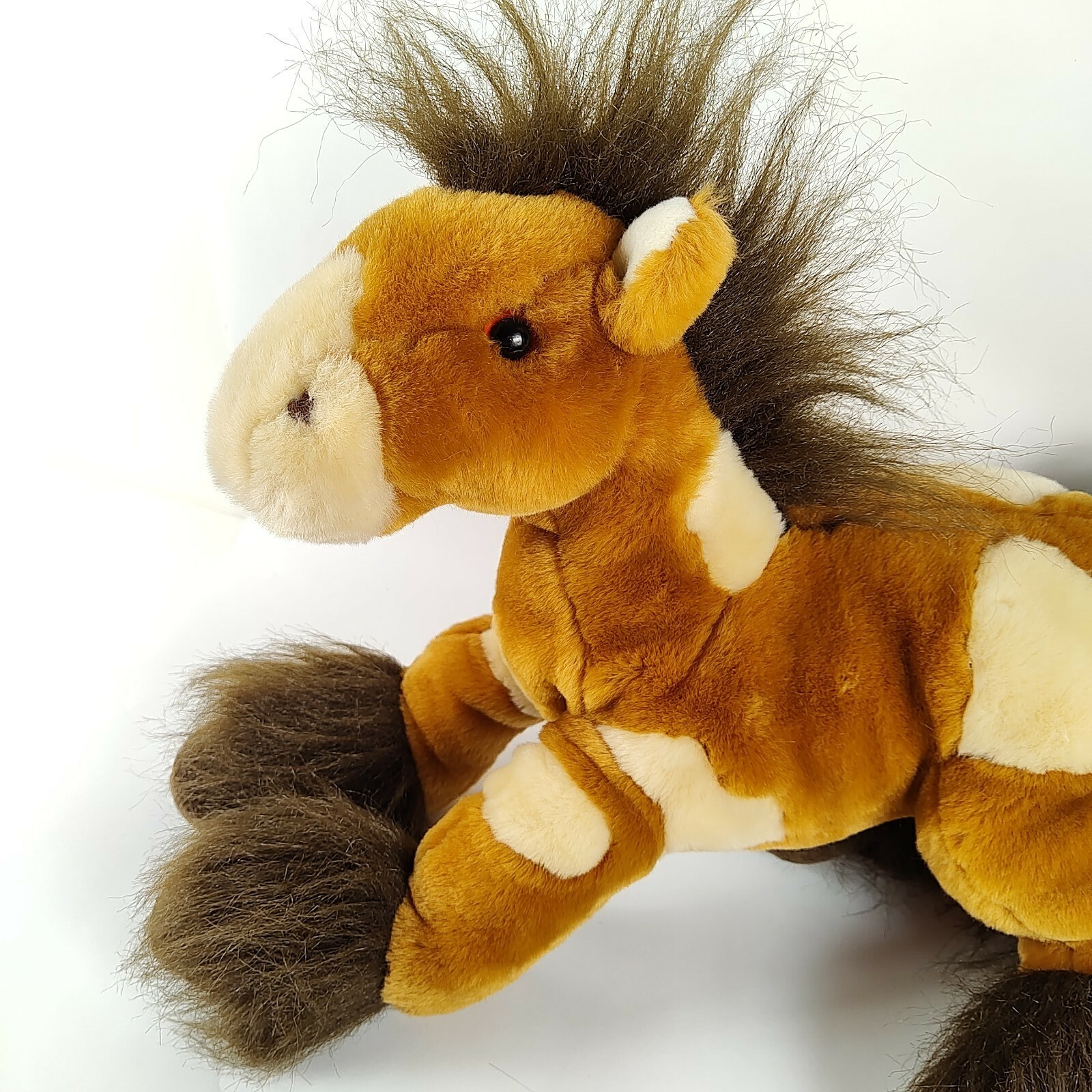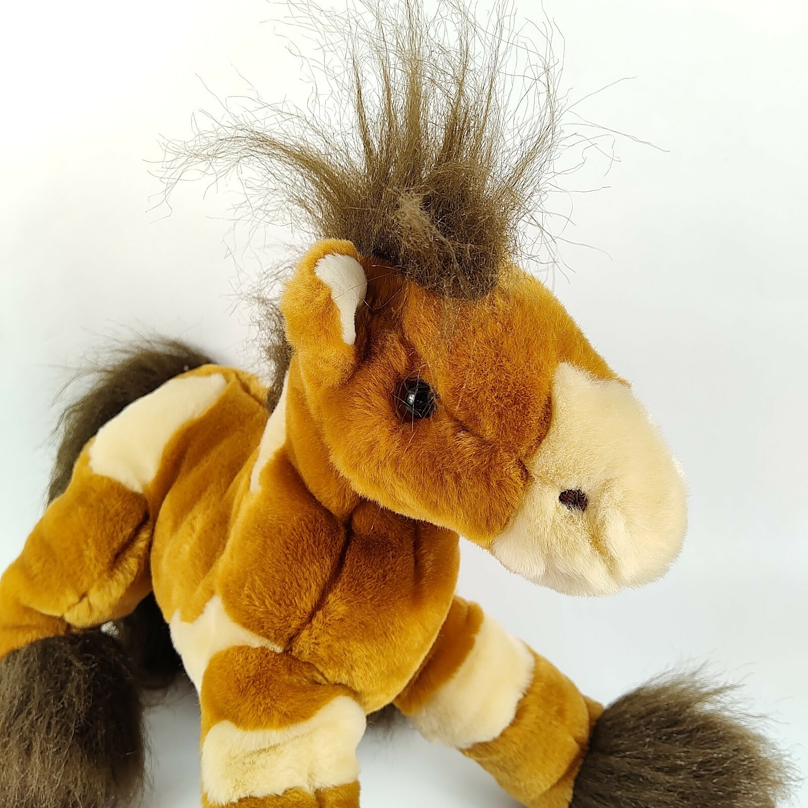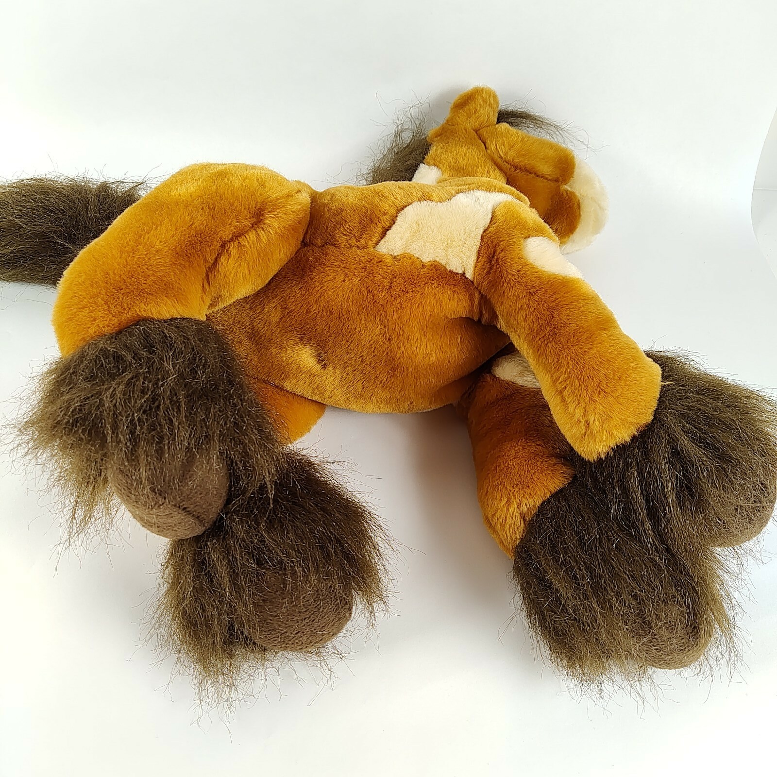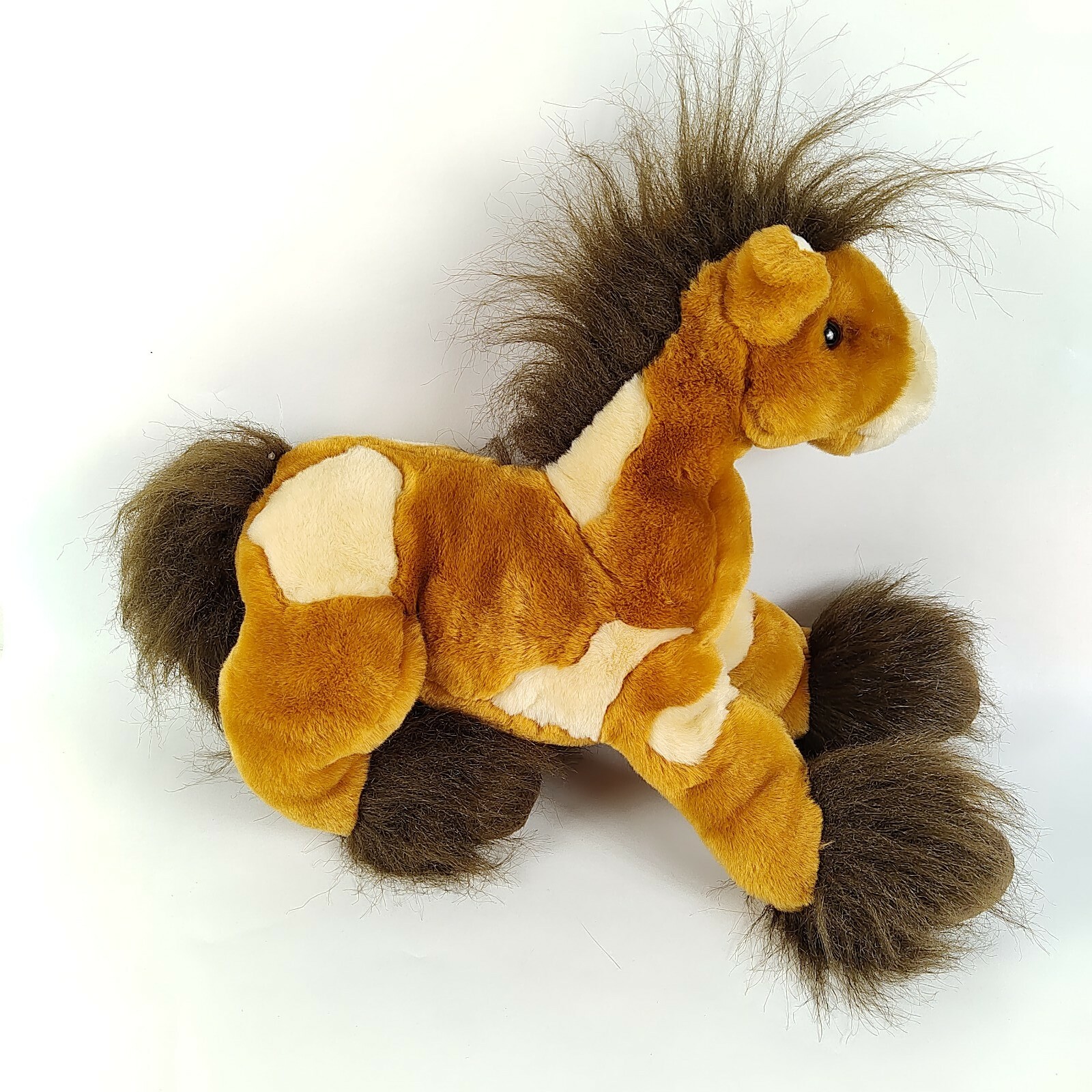 как выглядит Animal Alley Plush Horse 14" Clydesdale Pony Painted Brown Cream Fluffy Hooves фото