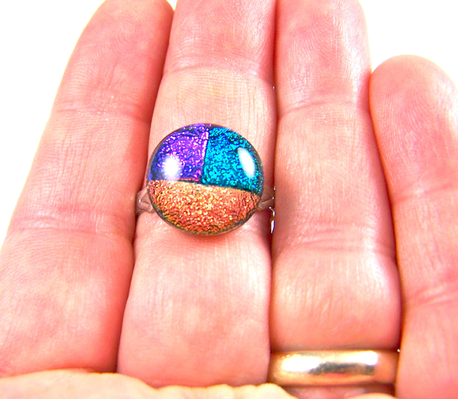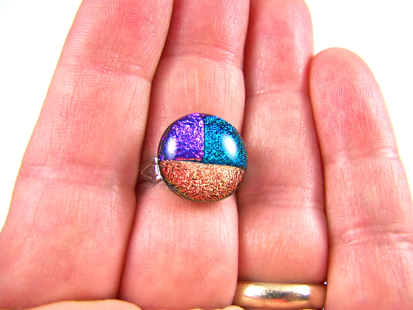 Dichroic Glass Ring Adjustable 1/2 12mm Pink Green Gold Copper Round Patchwork