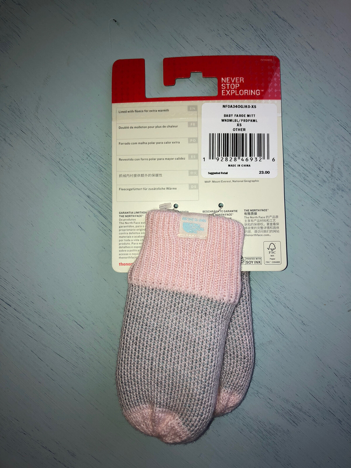 как выглядит NWT North Face Baby Infant Faroe Pink Bear Fleece Lined Mitt Mittens XS фото