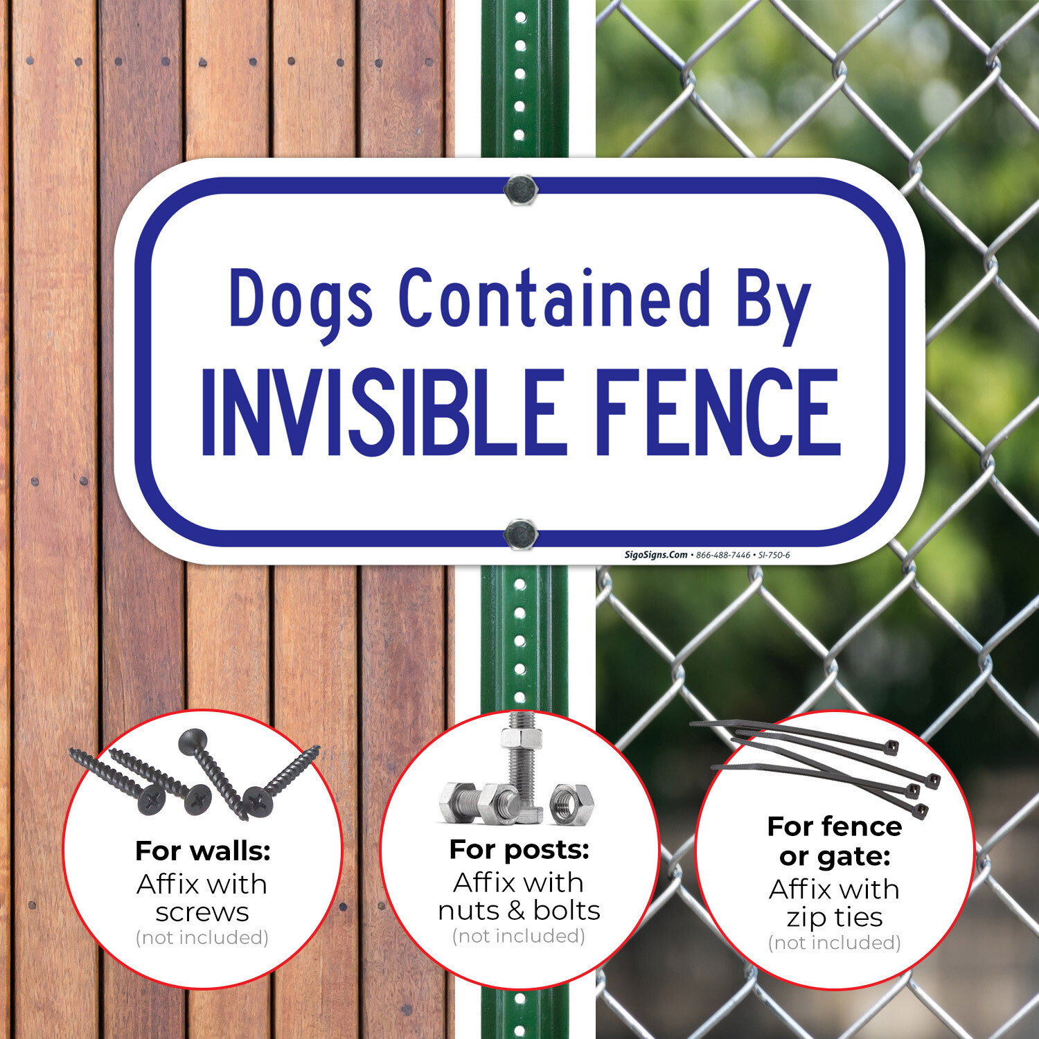 как выглядит Dogs Contained By Invisible Fence Sign, фото