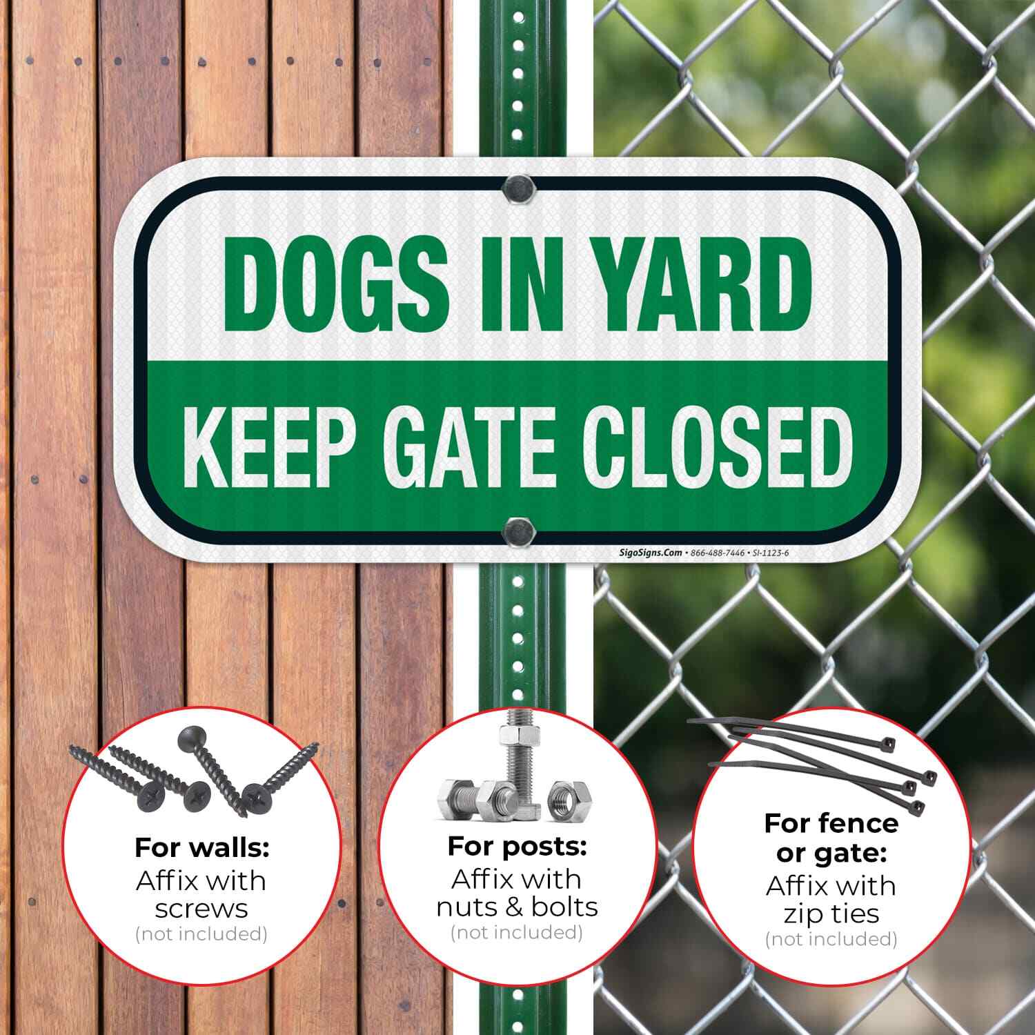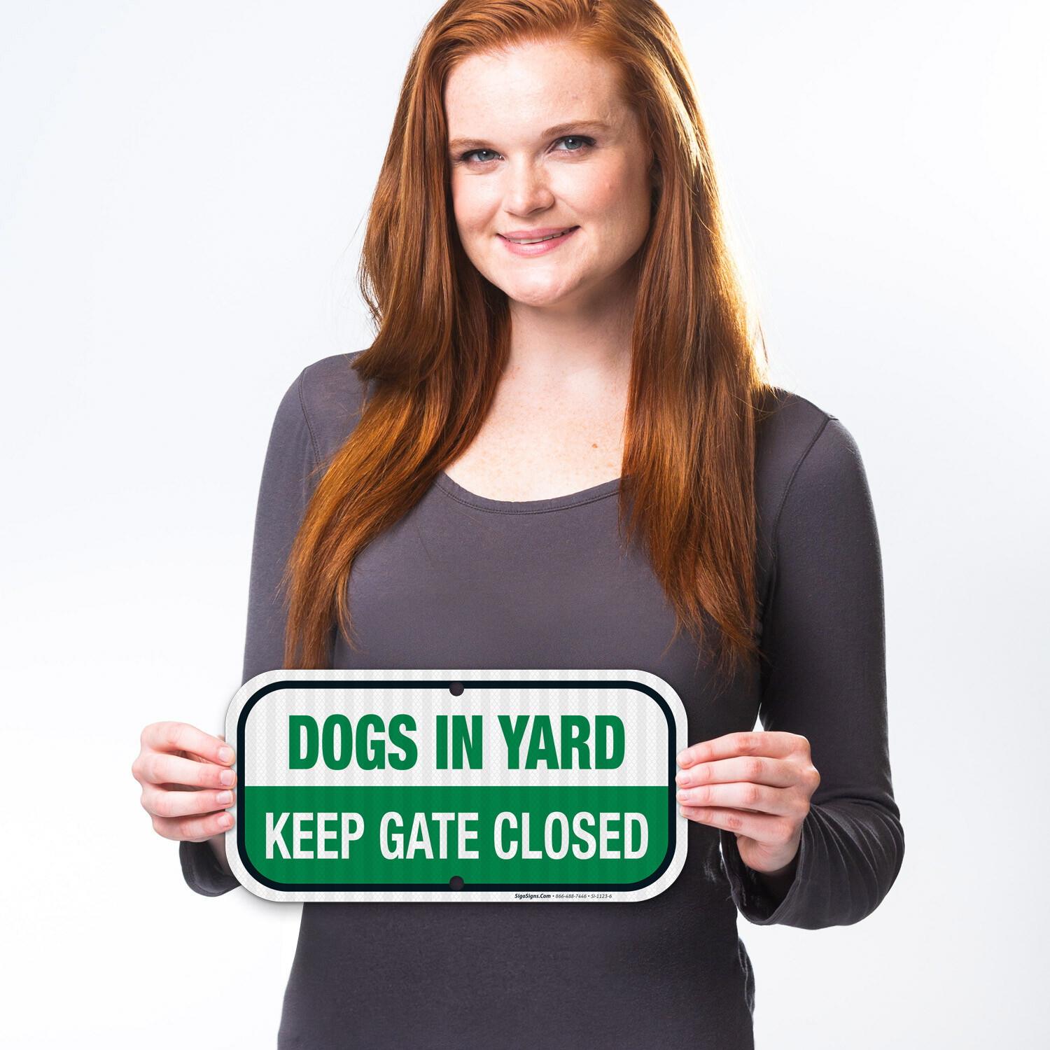 как выглядит Keep Gate Closed Sign, Dogs In Yard фото