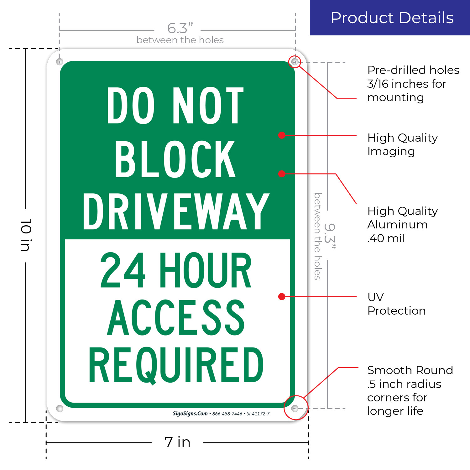 Do Not Block Driveway 24 Hour Access Required Sign,