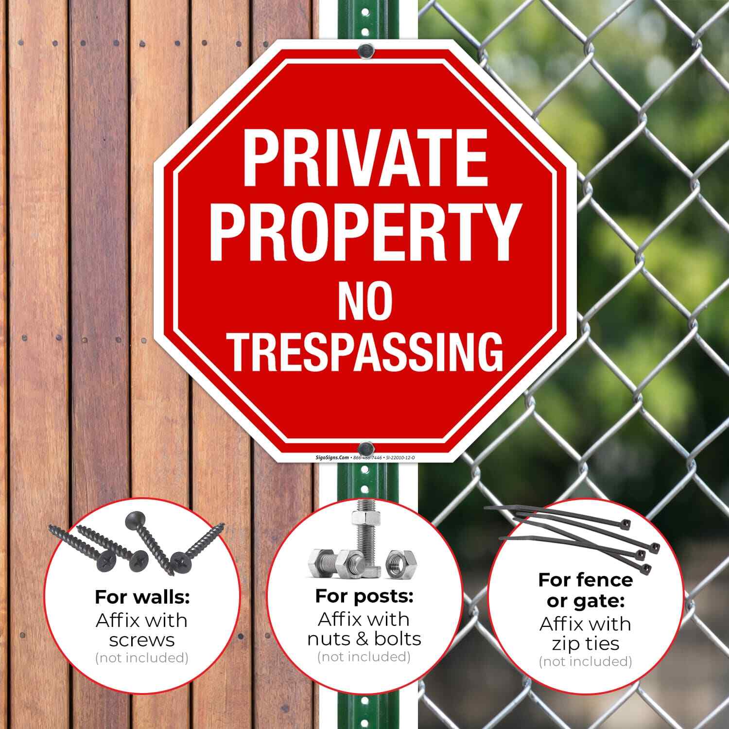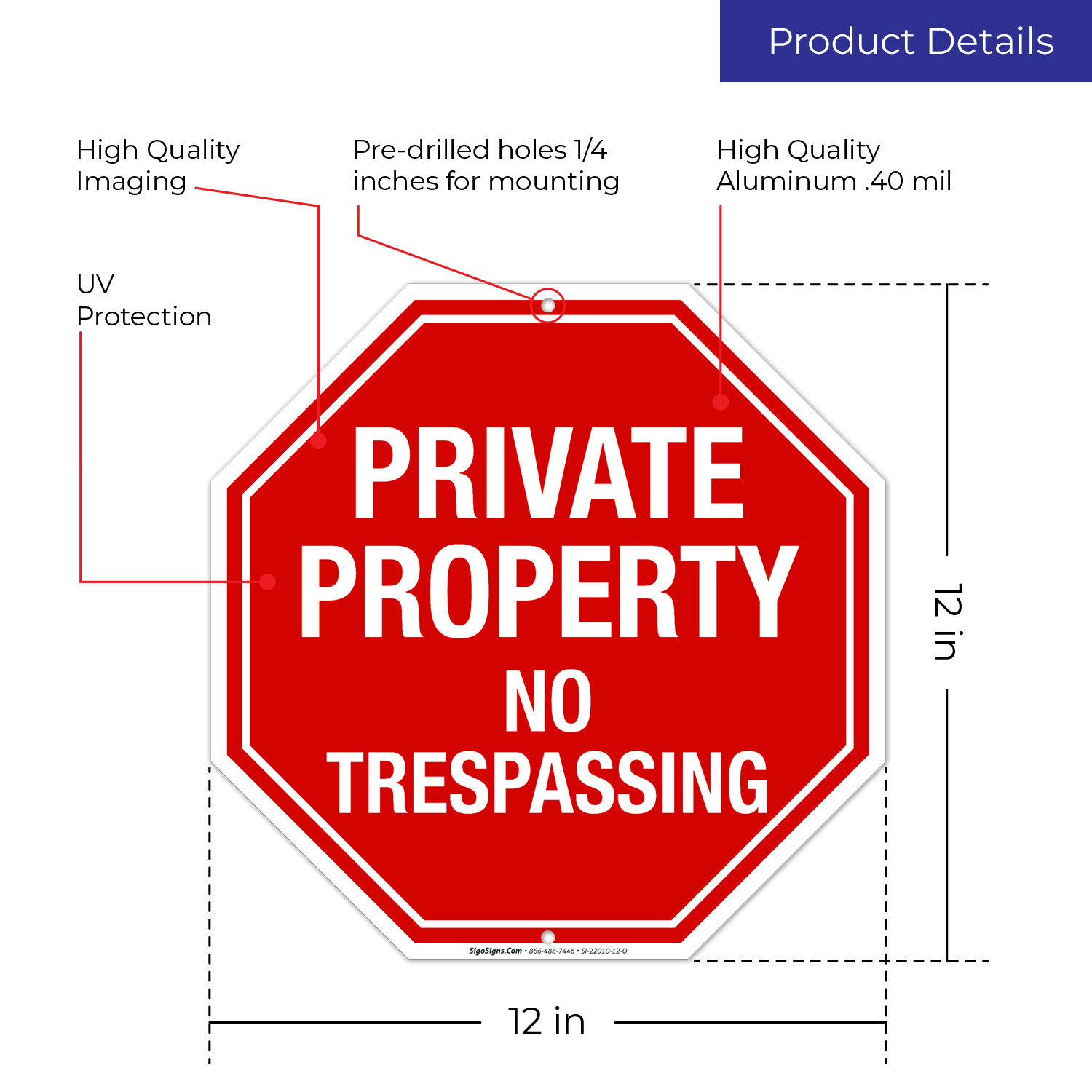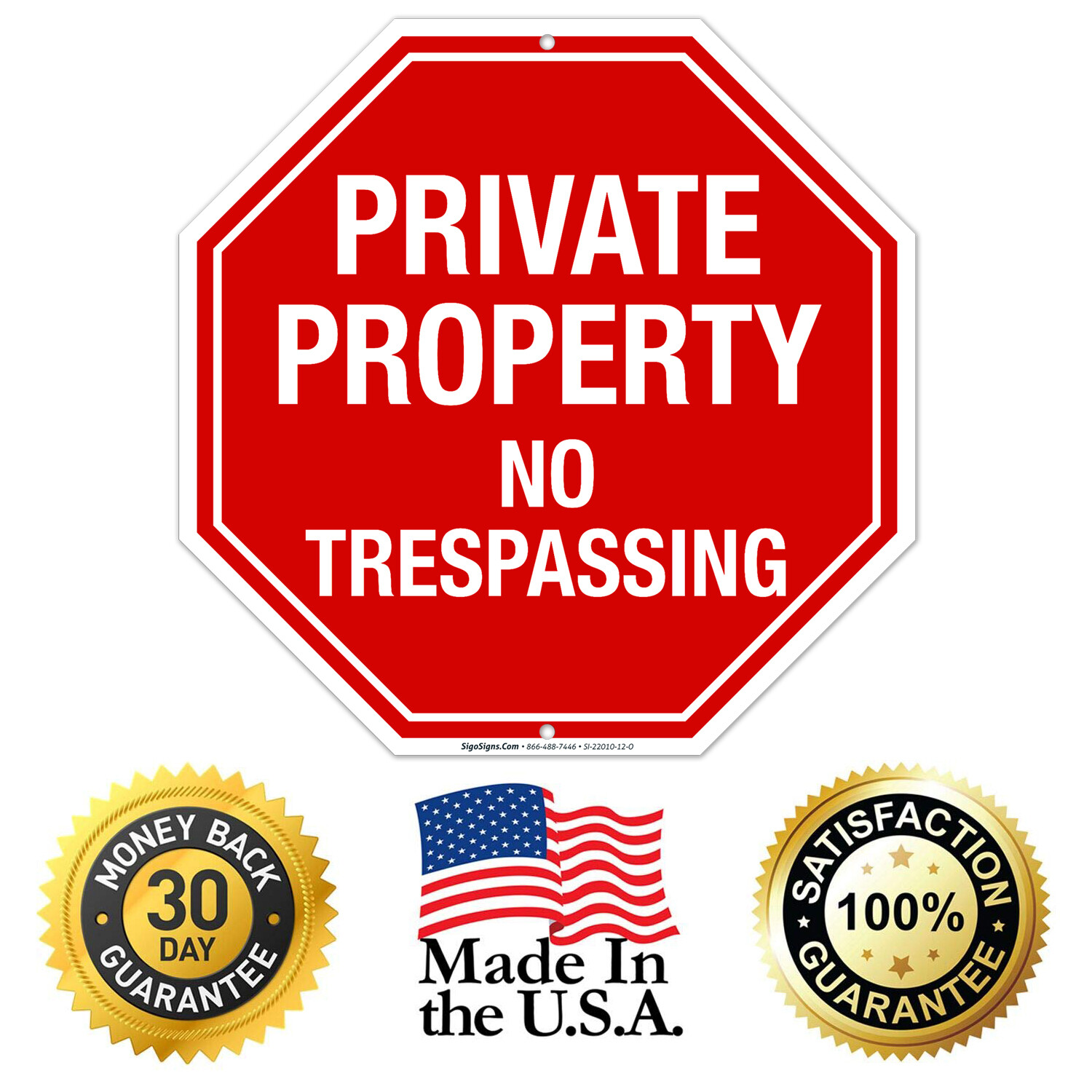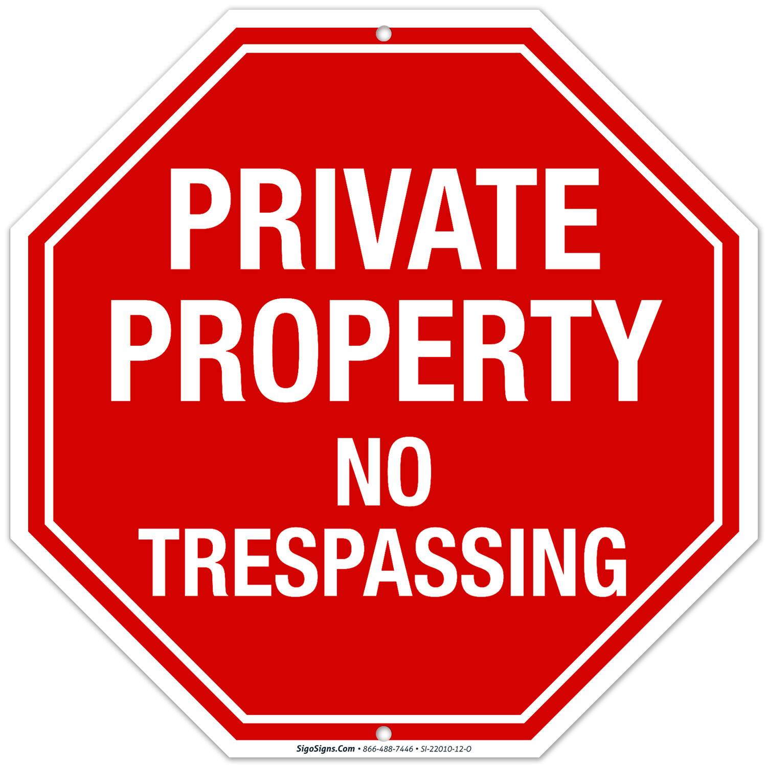 Private Property No Trespassing Sign, Octagon Shape Red Background,