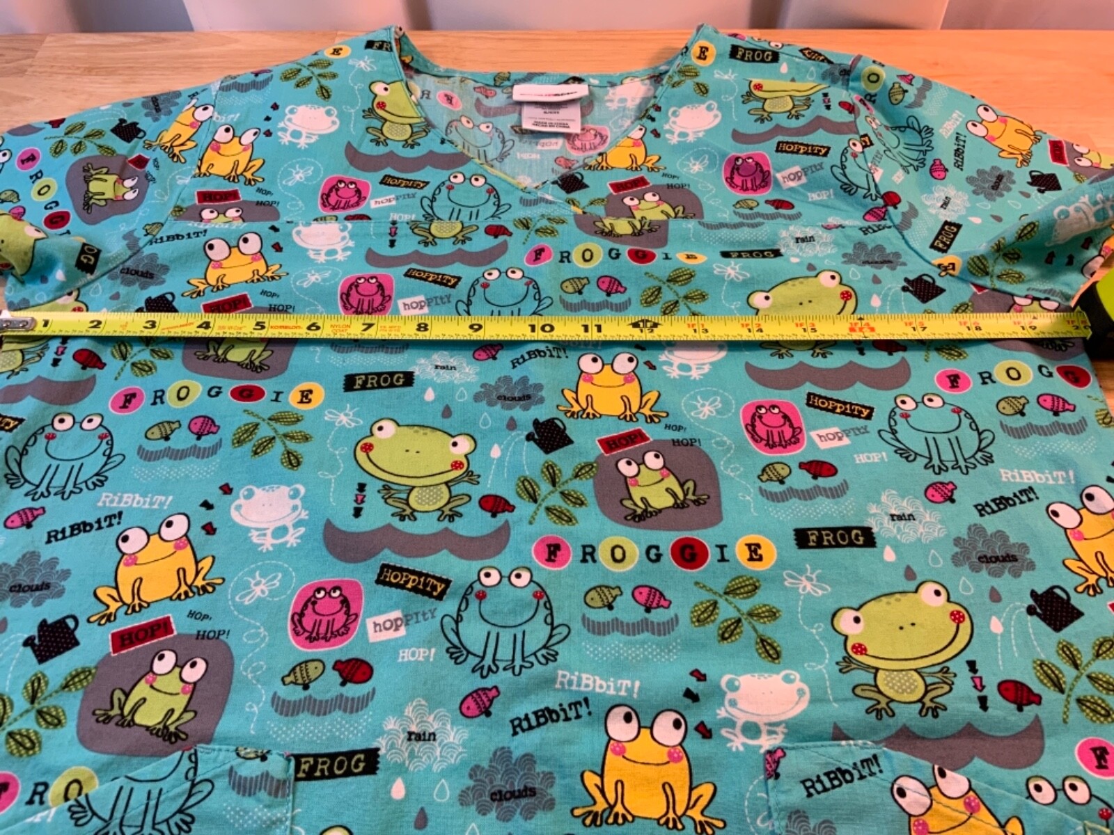 как выглядит Women s Scrub Star Top Sz S has Frogs Fish with Different Sayings-CUTE фото
