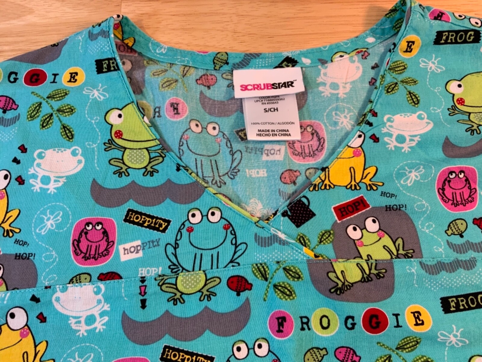 Women s Scrub Star Top Sz S has Frogs Fish with Different Sayings-CUTE