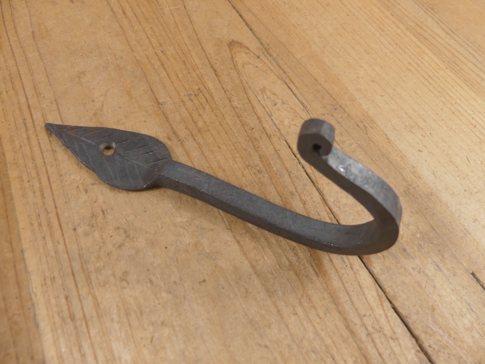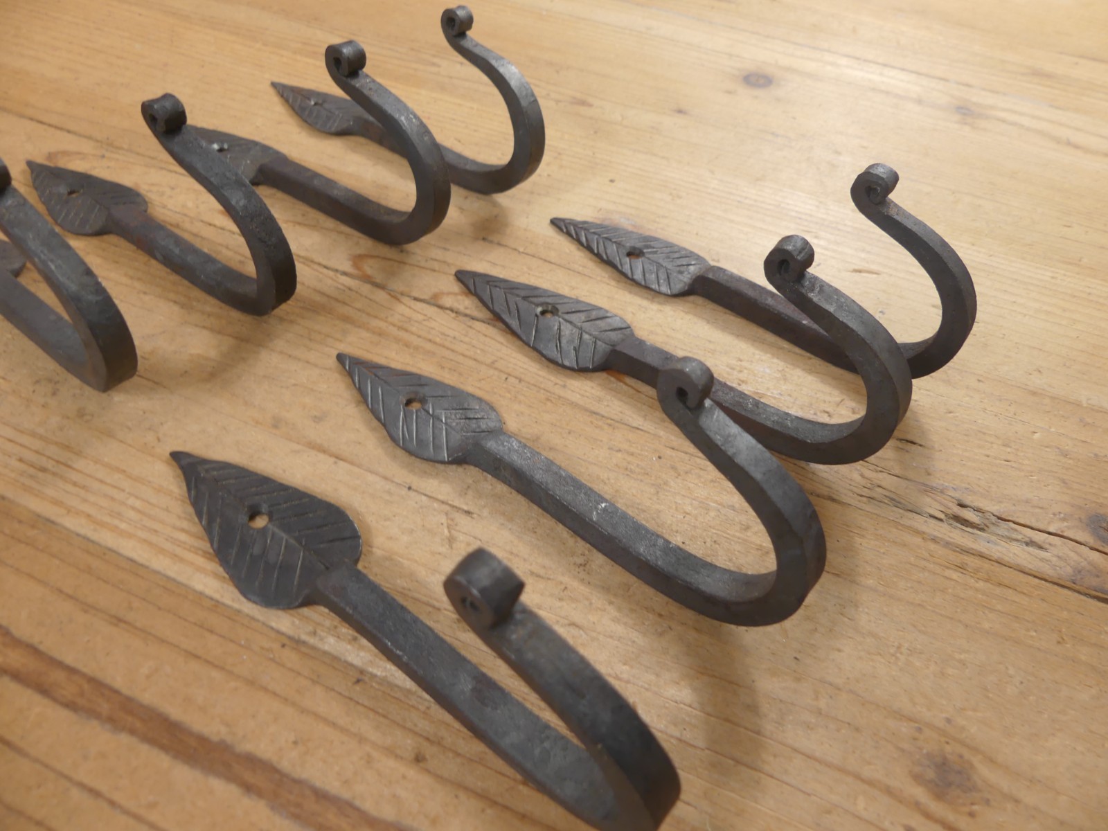 как выглядит 8 IRON LEAF HOOKS Coat Hat Entryway Hook 5 1/4" Long Hand Forged SOME RUST фото