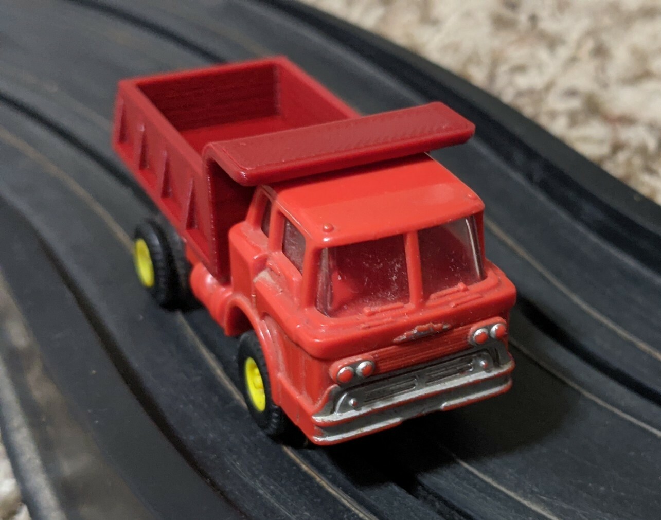 как выглядит AURORA THUNDERJET DUMP TRUCK BED TUB Tjet T-JET Mack Intl VIBRATOR CHERRY RED фото