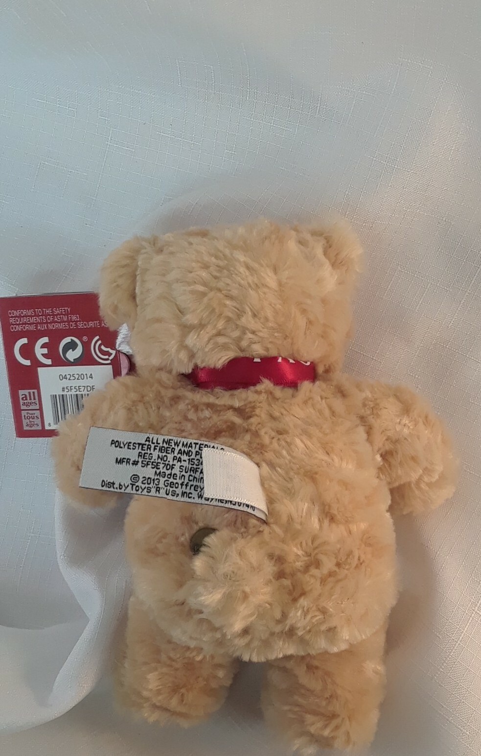 как выглядит 8" FAO SCHWARZ TEDDY BEAR Toys R Us Tush Button Plush Stuffed RED Ribbon 2013 фото