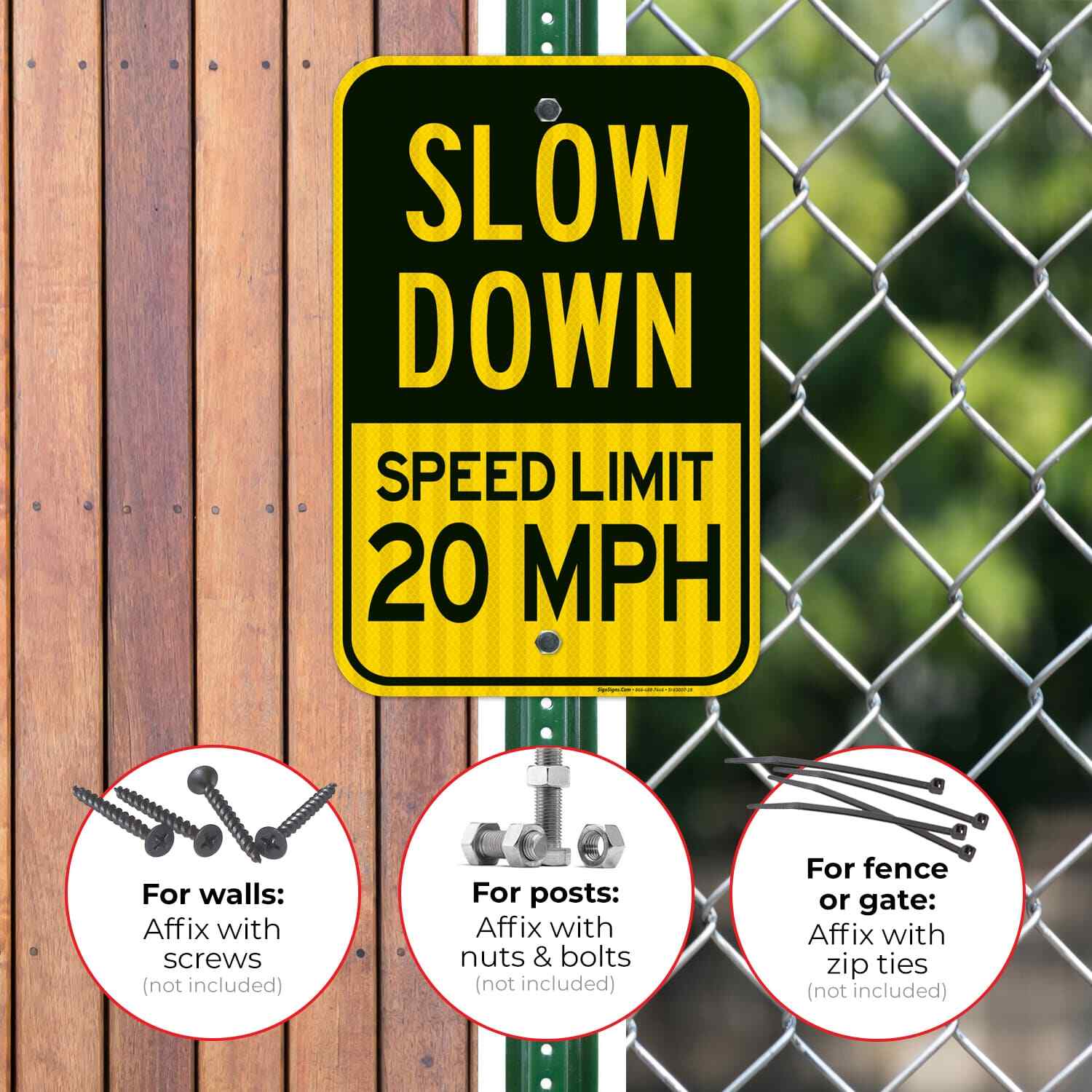 Slow Down Sign, Speed Limit 20 MPH Sign,