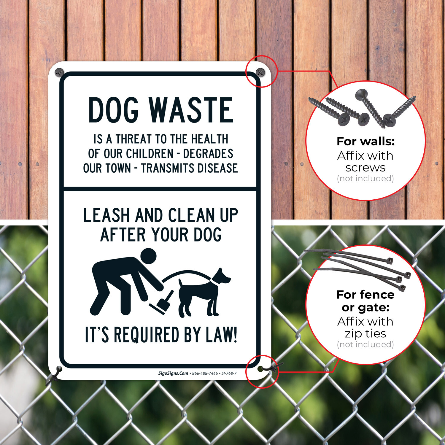 Leash and Clean Up After Your Dog Sign, Dog Waste Sign,