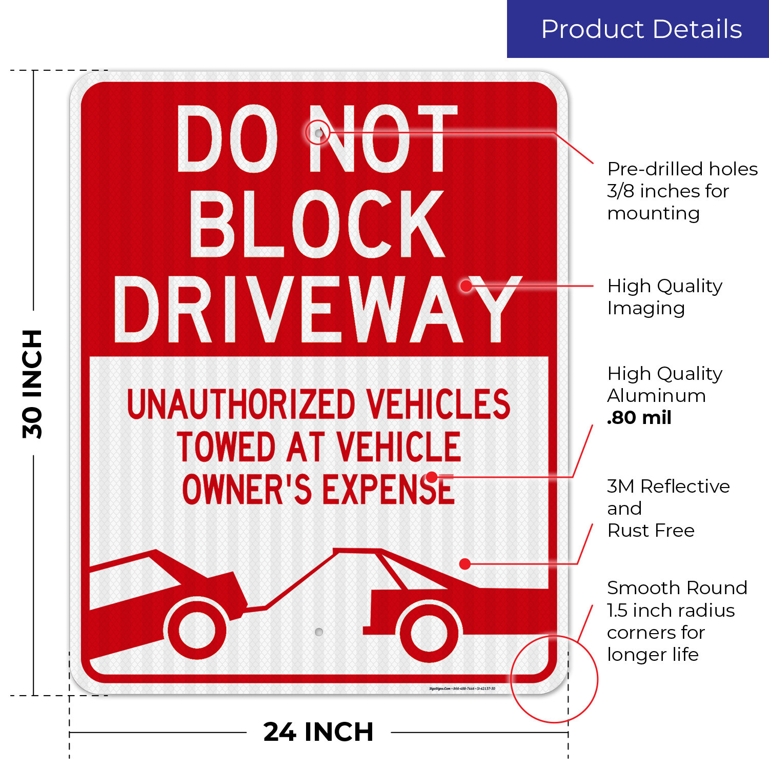 Do Not Block Driveway Sign, Unauthorized Vehicles Will Be Towed Sign,