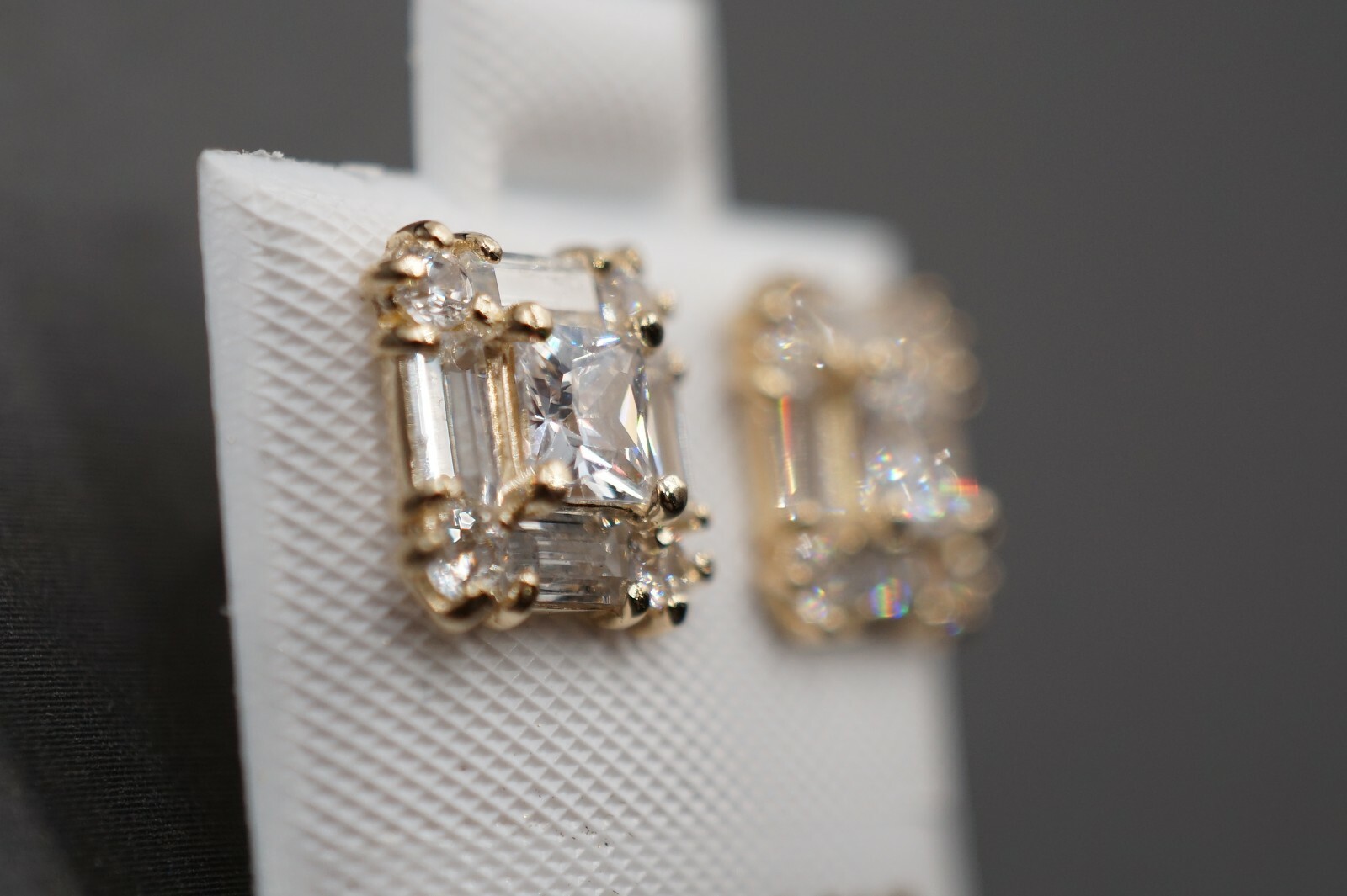 как выглядит 14K Solid Yellow Gold 9.3MM Square Princess Cut CZ Baguette Stud Earring. фото