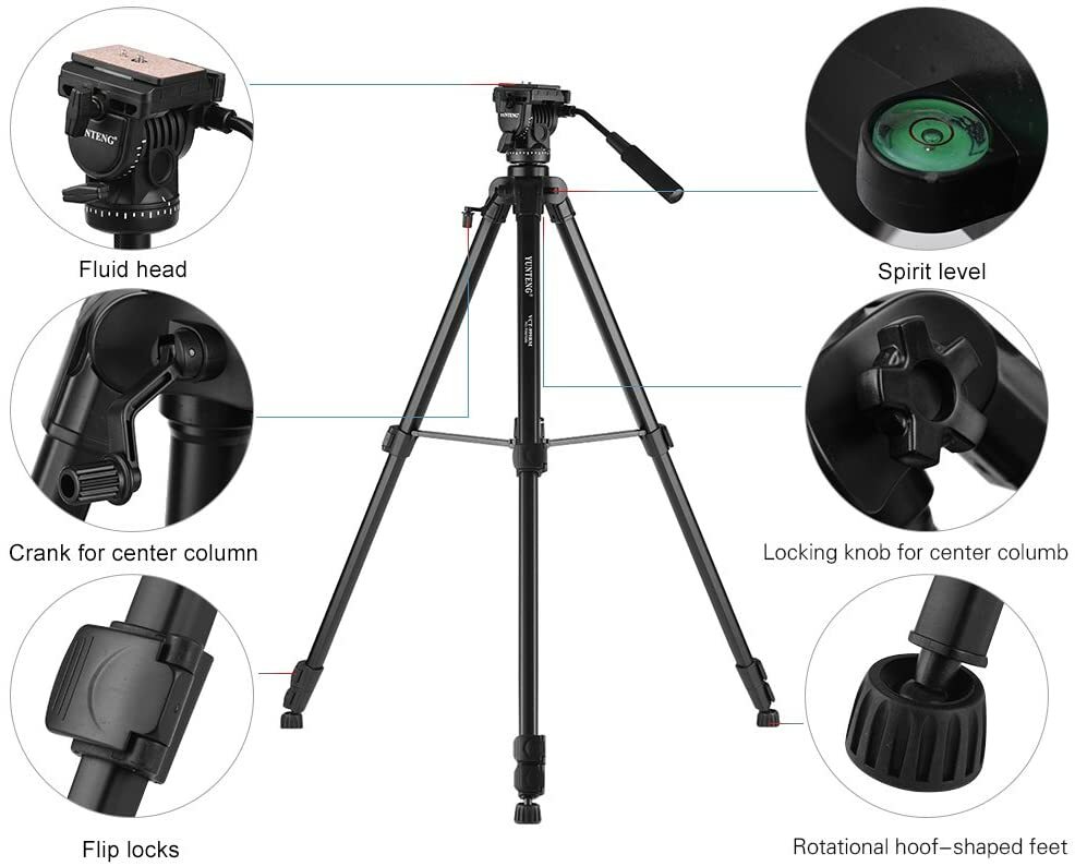 YUNTENG 2M VCT-999RM Video Camera Tripod 4-Section Adjustable