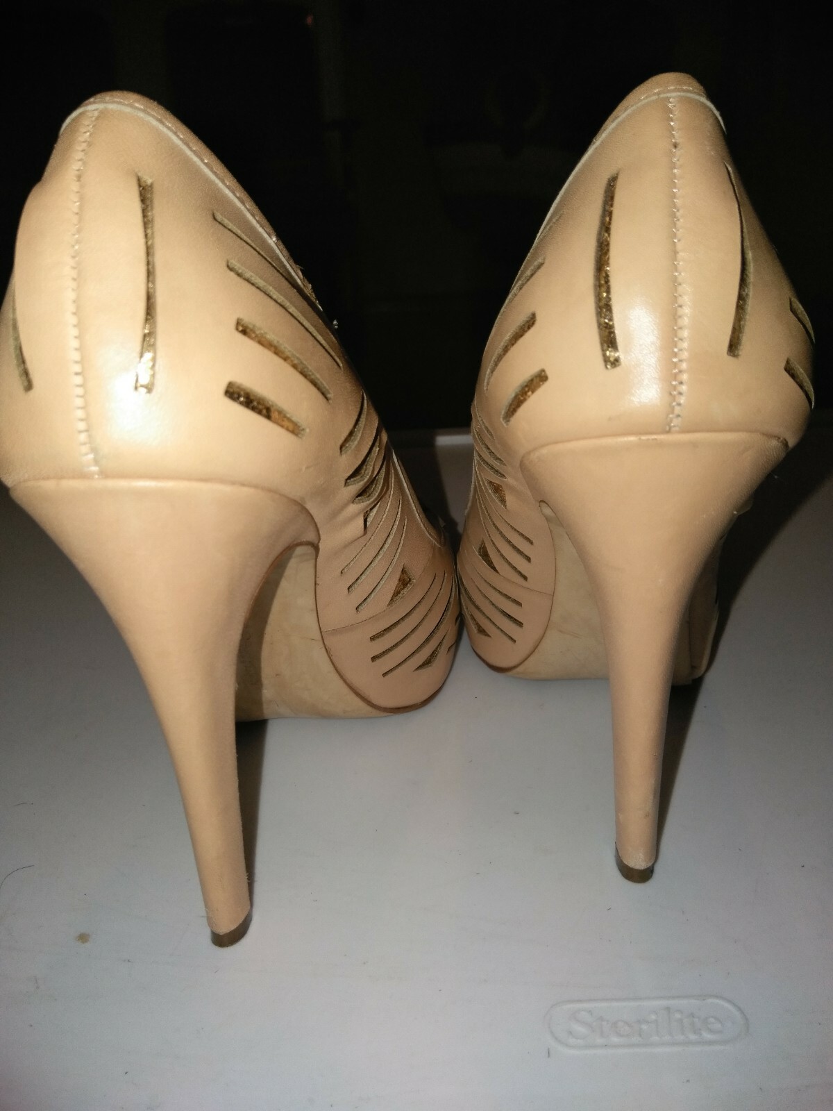 как выглядит BCBGeneration Tan With Metallic Gold Eylets Stiletto Pumps Size 7/37 фото