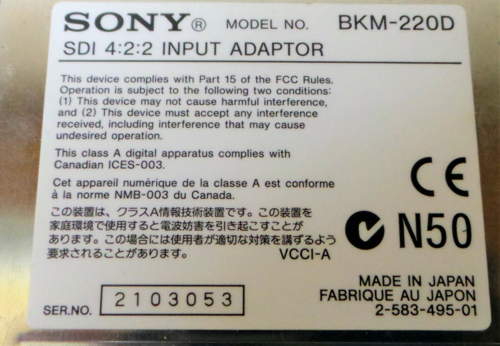 SONY BKM-220D SDI 4:2:2 INPUT ADAPTER.