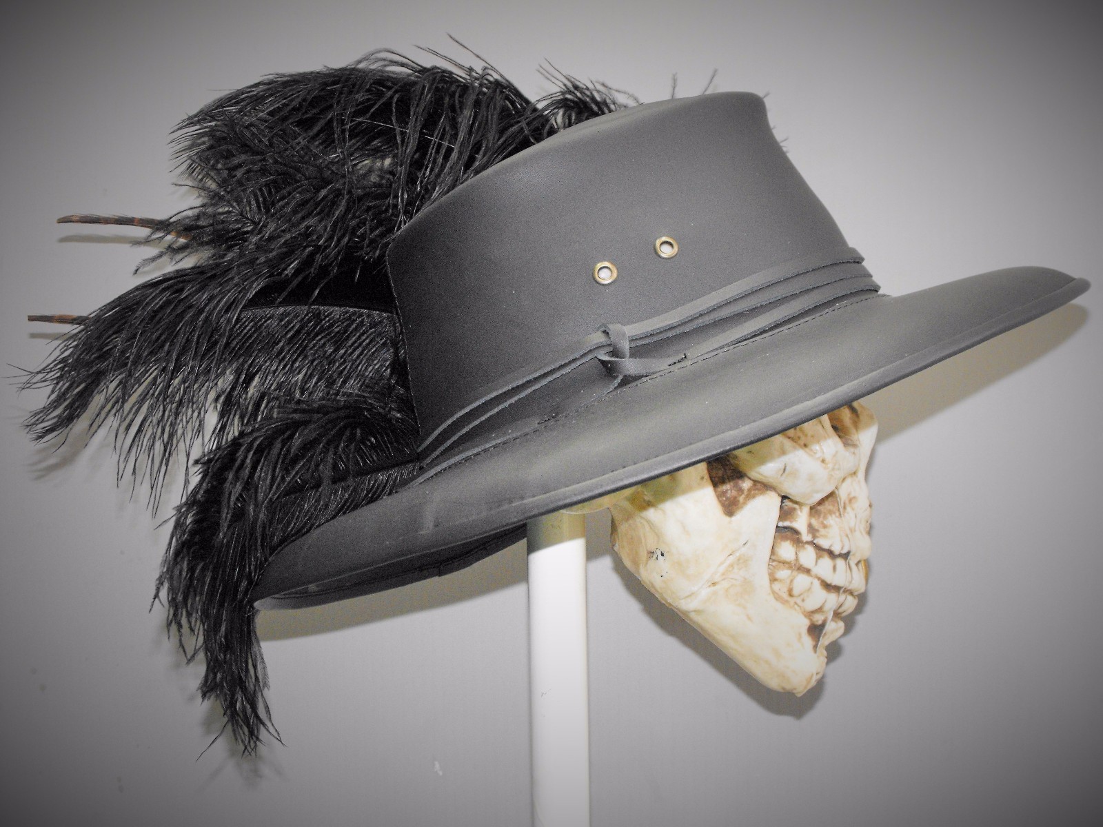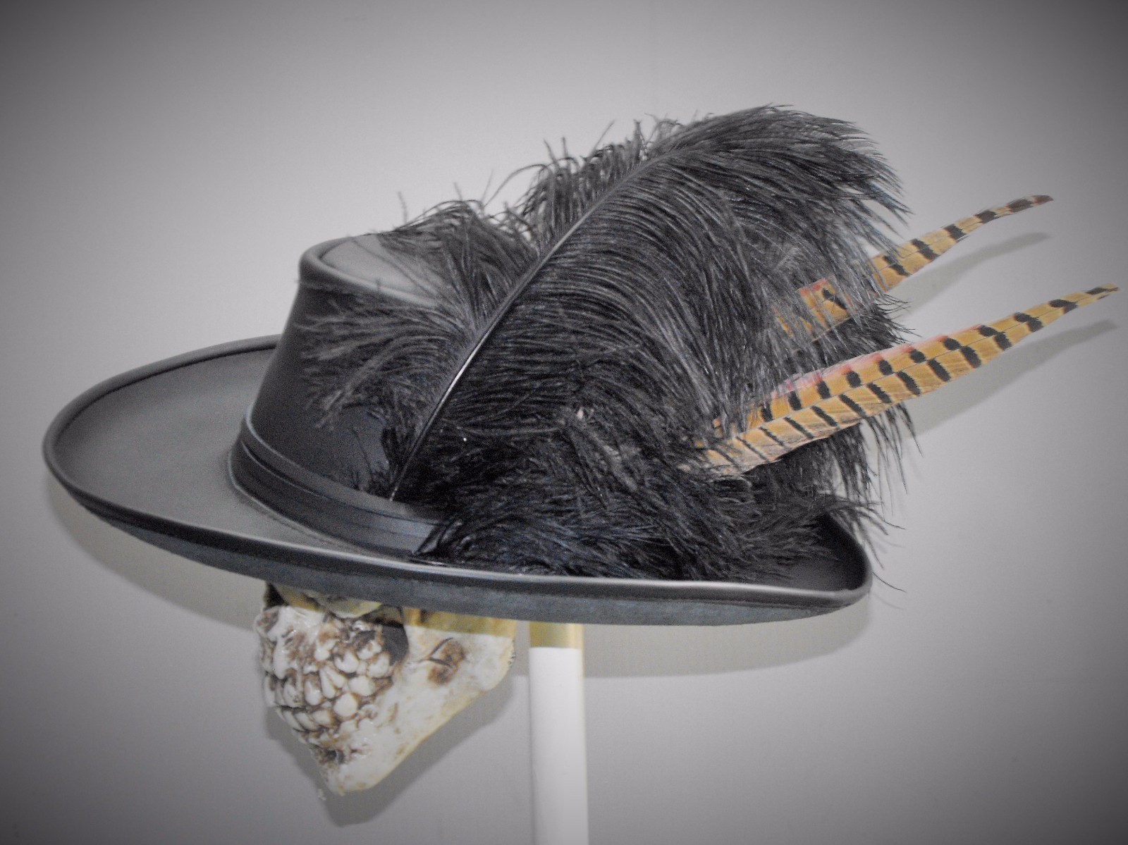 caraiba black leather hat pirate feather costume cosplay reenactment cosplay