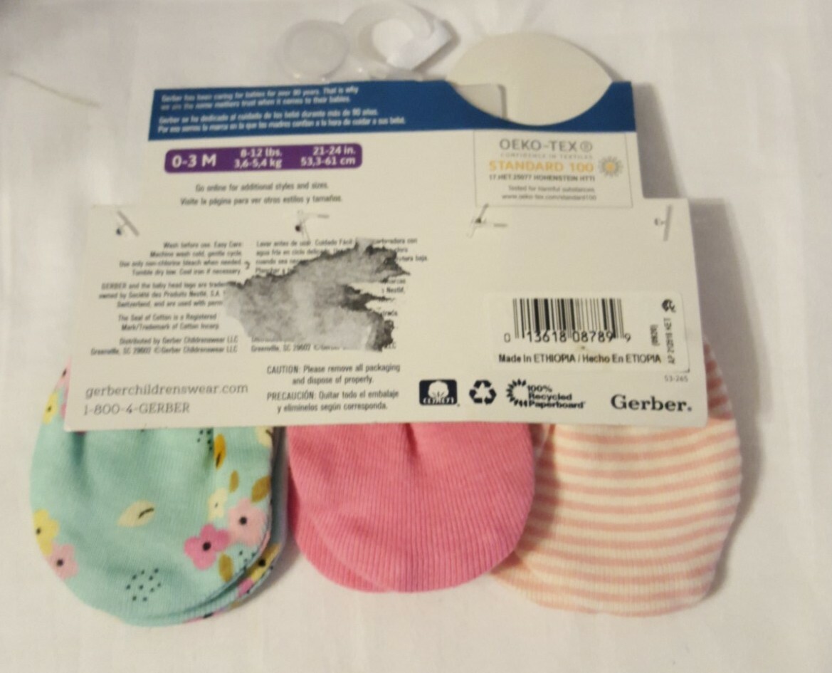 Gerber 3-Pack Mittens - Newborn Baby Girl - 0-3 Months